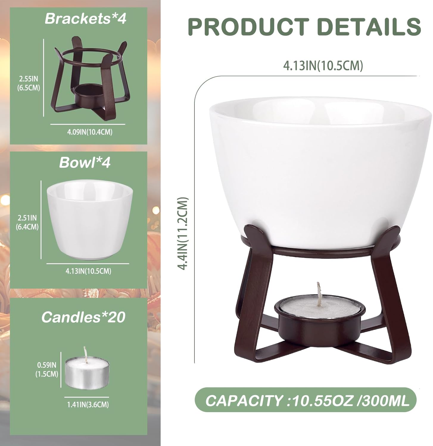 - 【Enhanced Stability&Optimal Warmth】Feature sturdy wire frame with a platform,securely hold ceramic bowl in place,ensuring stability,without wobbles and the risk of setting your holiday table afire.This design offers enhanced stability compared to a top support ring for suspending the ceramic bowl. there has been an adjustment in the tea-light candle placement to ensure optimal distance from the flame to the ceramic bowl,providing gentle warmth,maintaining the butter at just the right temperature