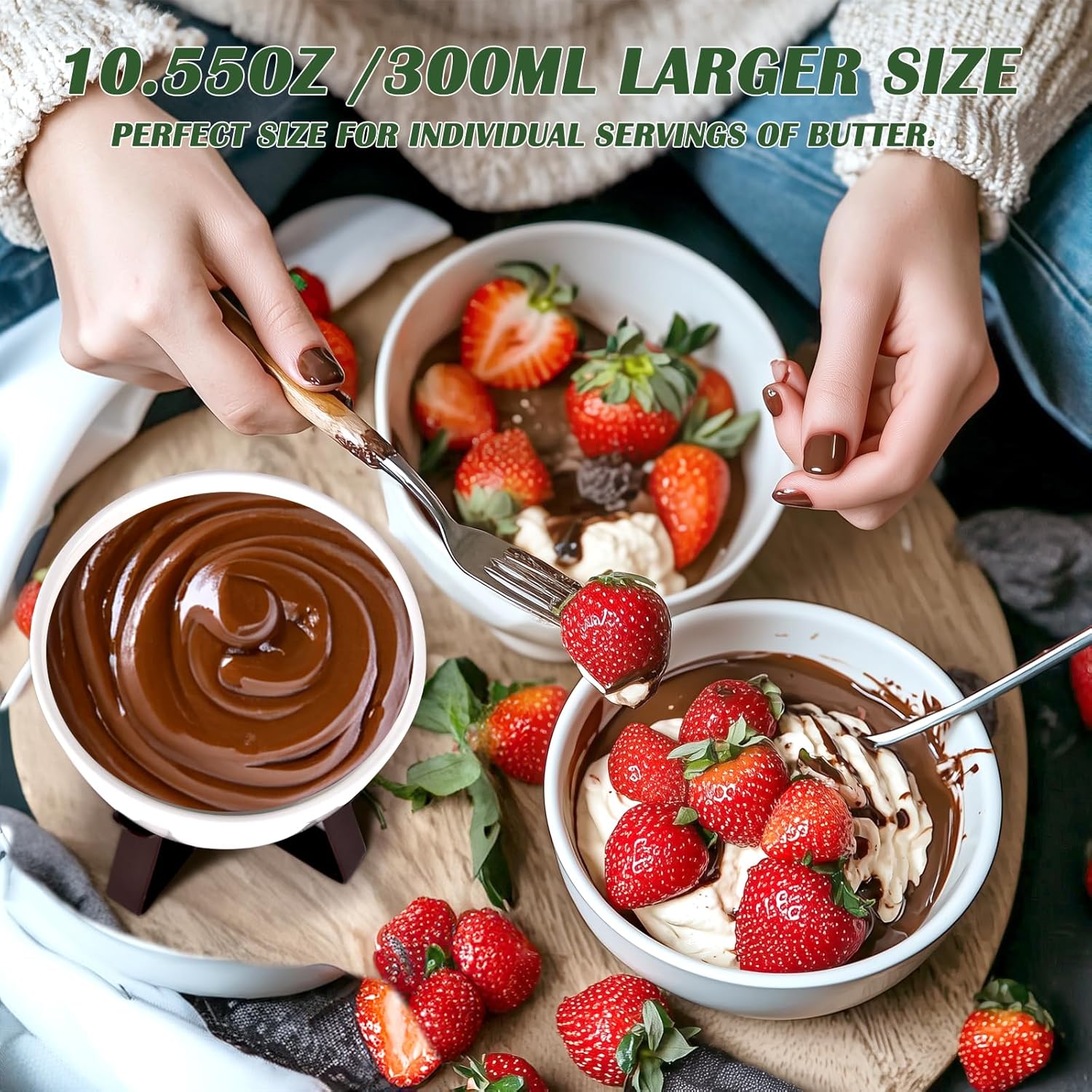 - 【Occasions&Versatile Butter Melter】In addition to butter heating,it can also be used to melt chocolate,heat sauces,dips,hot sauces,seasoning ect.perfect for presenting portions,including souffle,creme brulee,lava cakes,french onion soup,snacks,quiche,or ice cream ect.300ml bowls is great for serving lots of food,like soup,ramen,stew,desserts,appetizers and puddings.Whether for birthday party,Christmas gathering,Valentine's Day or other,it makes a valuable addition to any kitchen or dining room