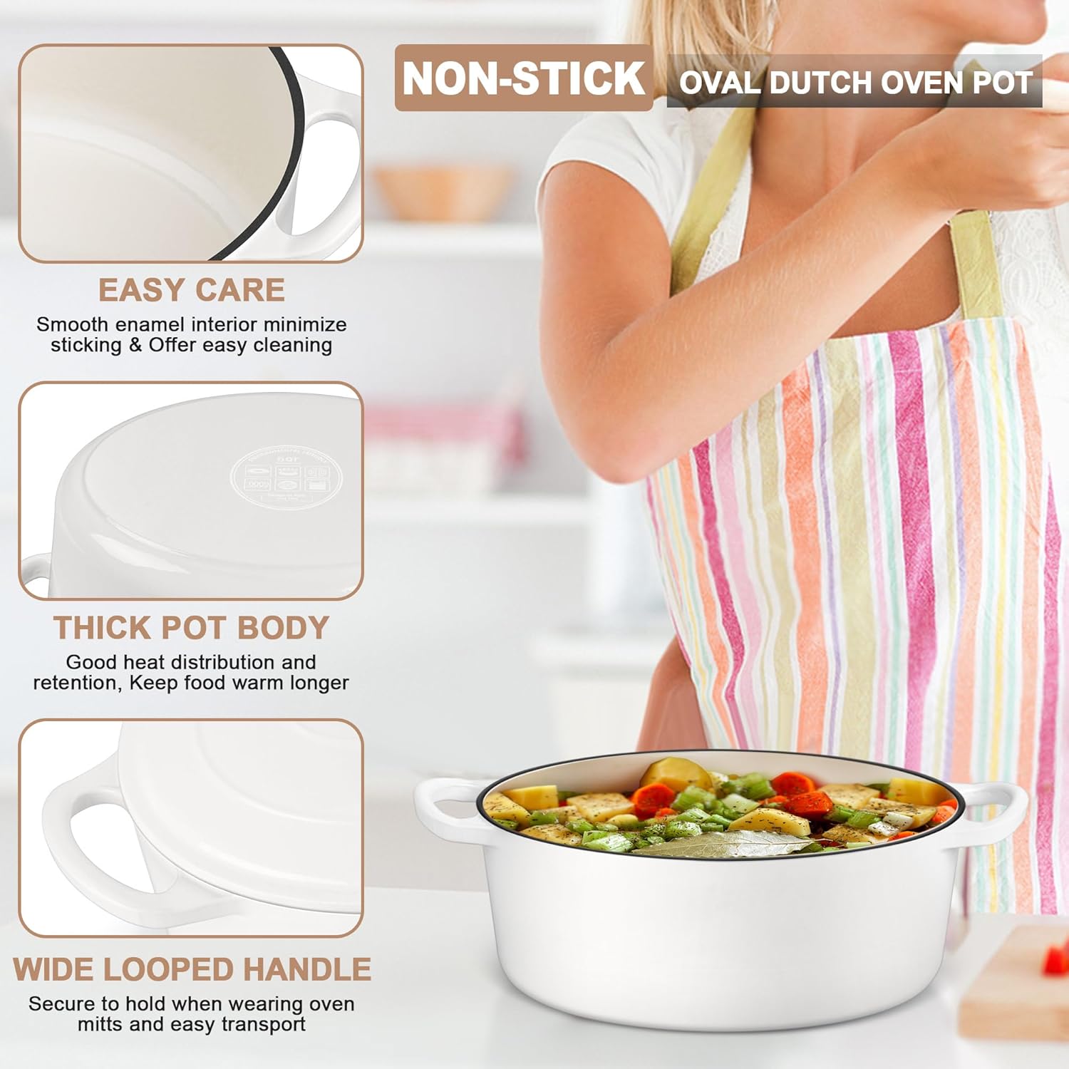 E-far 5QT Oval Dutch Oven Pot with Lid, Enameled Cast Iron Dutch Oven with Dual Handles for Sourdough Bread Baking Cooking, Nonstick Enamel Coated Cookware(White), Non-Toxic & Easy Clean