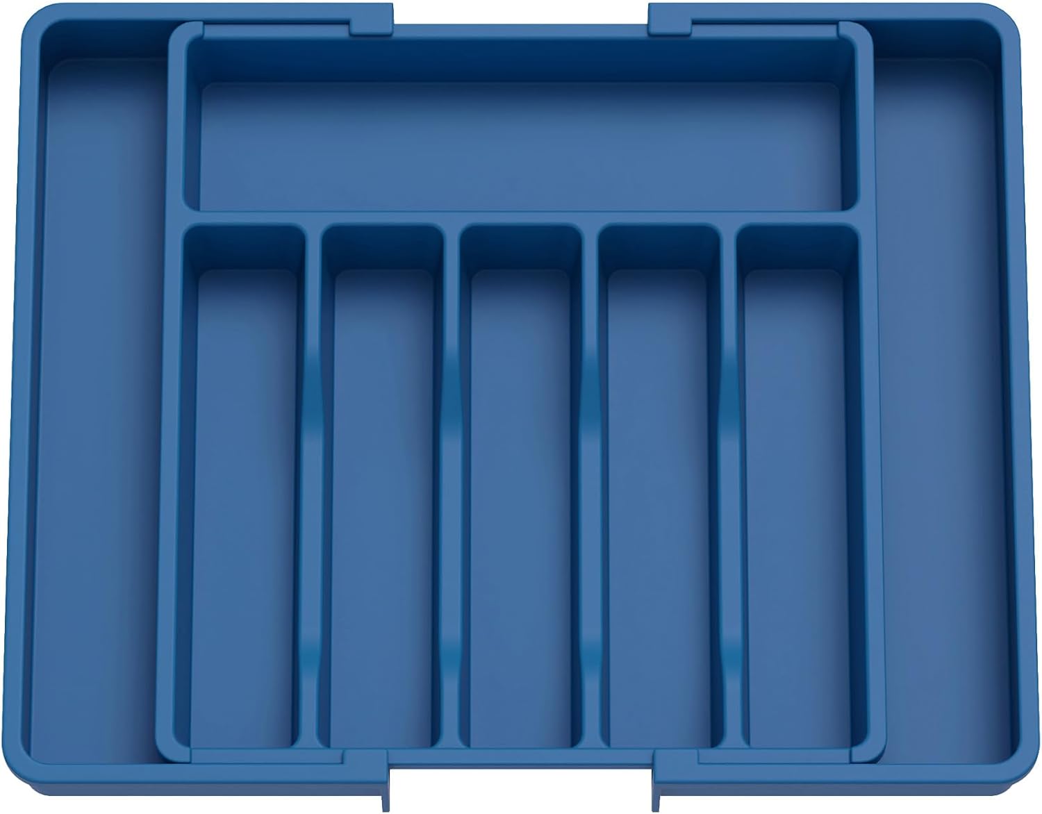 Lifewit Silverware Drawer Organizer, Expandable Utensil Tray for Kitchen, BPA Free Flatware and Cutlery Holder, Adjustable Plastic Storage for Spoons Forks Knives, Large, Dark Blue