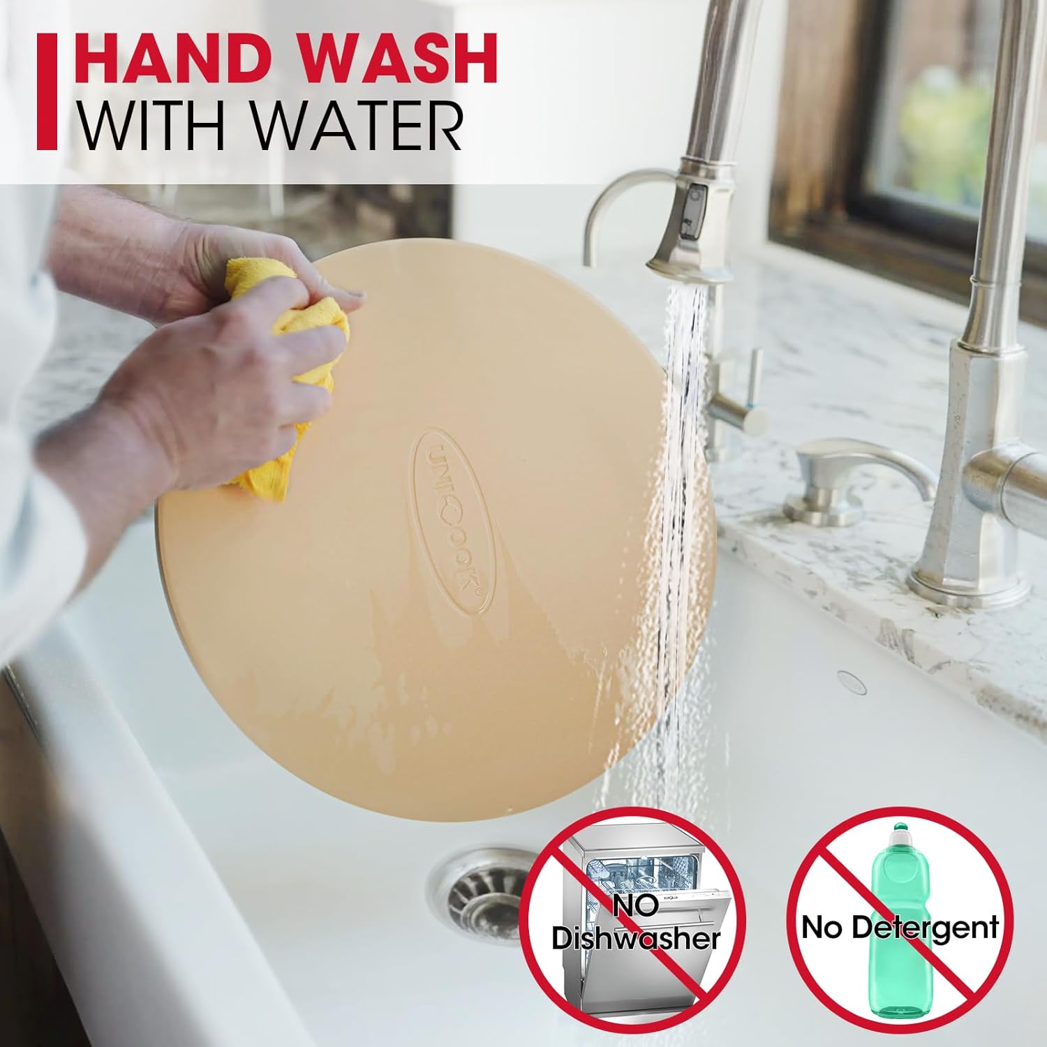 - 15 Inch Round Pizza Stone: Unicook 15” round pizza stone is made of natural cordierite and heat resistant up to 1,450℉(787℃). Be sure to measure your grill and oven's interior and choose a stone that fits comfortably with at least 1 inch of clearance on all sides