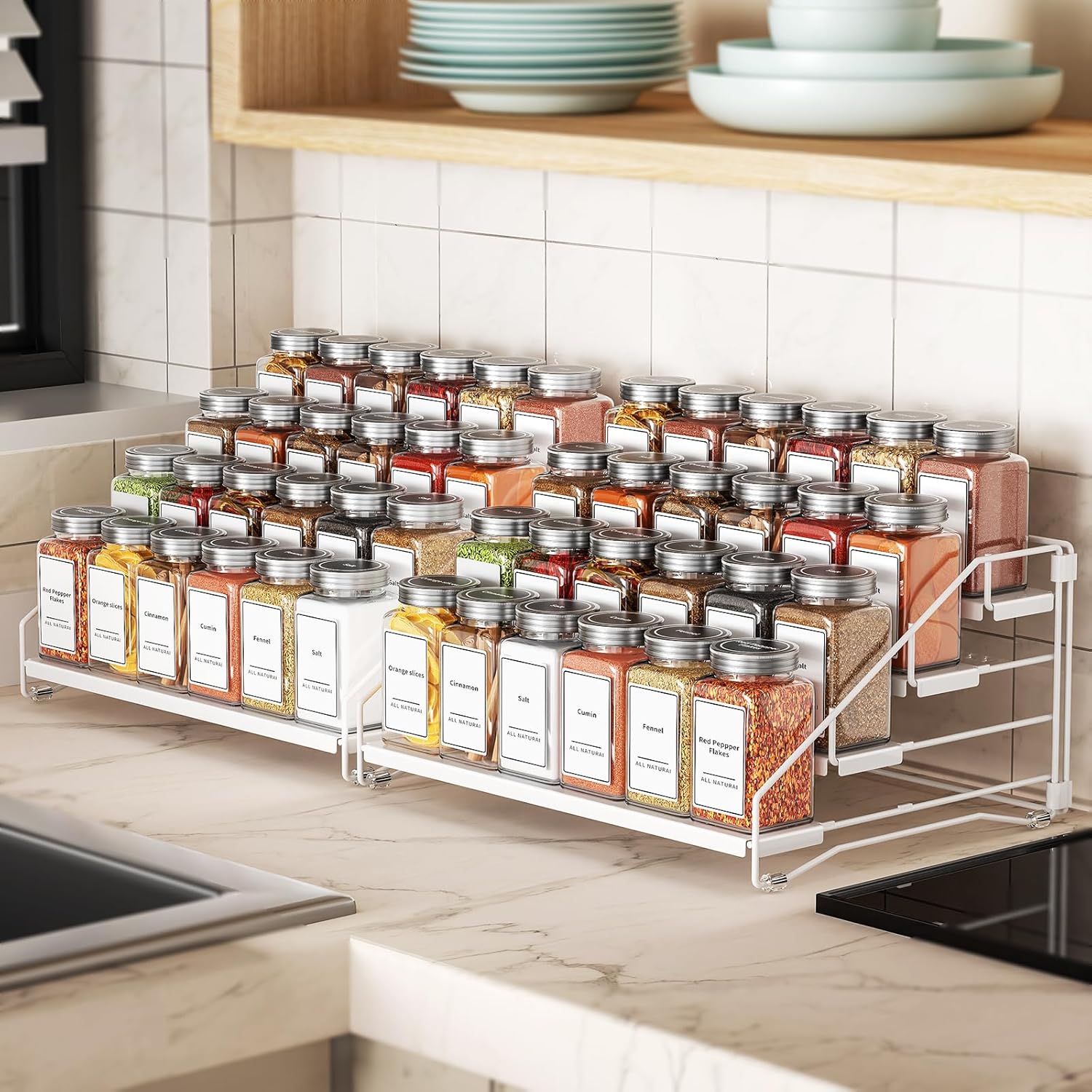 Spice Organization for Cabinet, Spice Rack Organizer, Spice Rack Organizer for Cabinet, Depth Adjustable Seasoning Organzier Organizer for Cabinet, Countertop, Pantry, Metal, White (2 Pack)