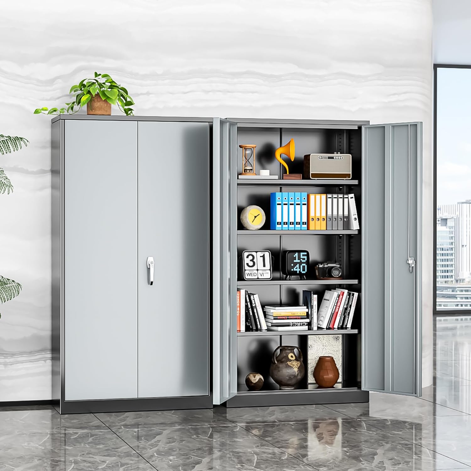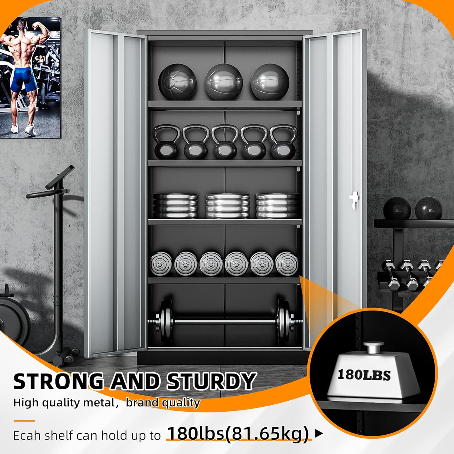- 【High Security】: Tall steel storage cabinet with 2 door and 4 adjustable shelves to accommodate items of all sizes.The locking file cabinet with 2 Locking keys and 3-pointed locking system can highly secure your belongings.Whether you want to store office files, garage tools, or other large and heavy items, it's no problem.