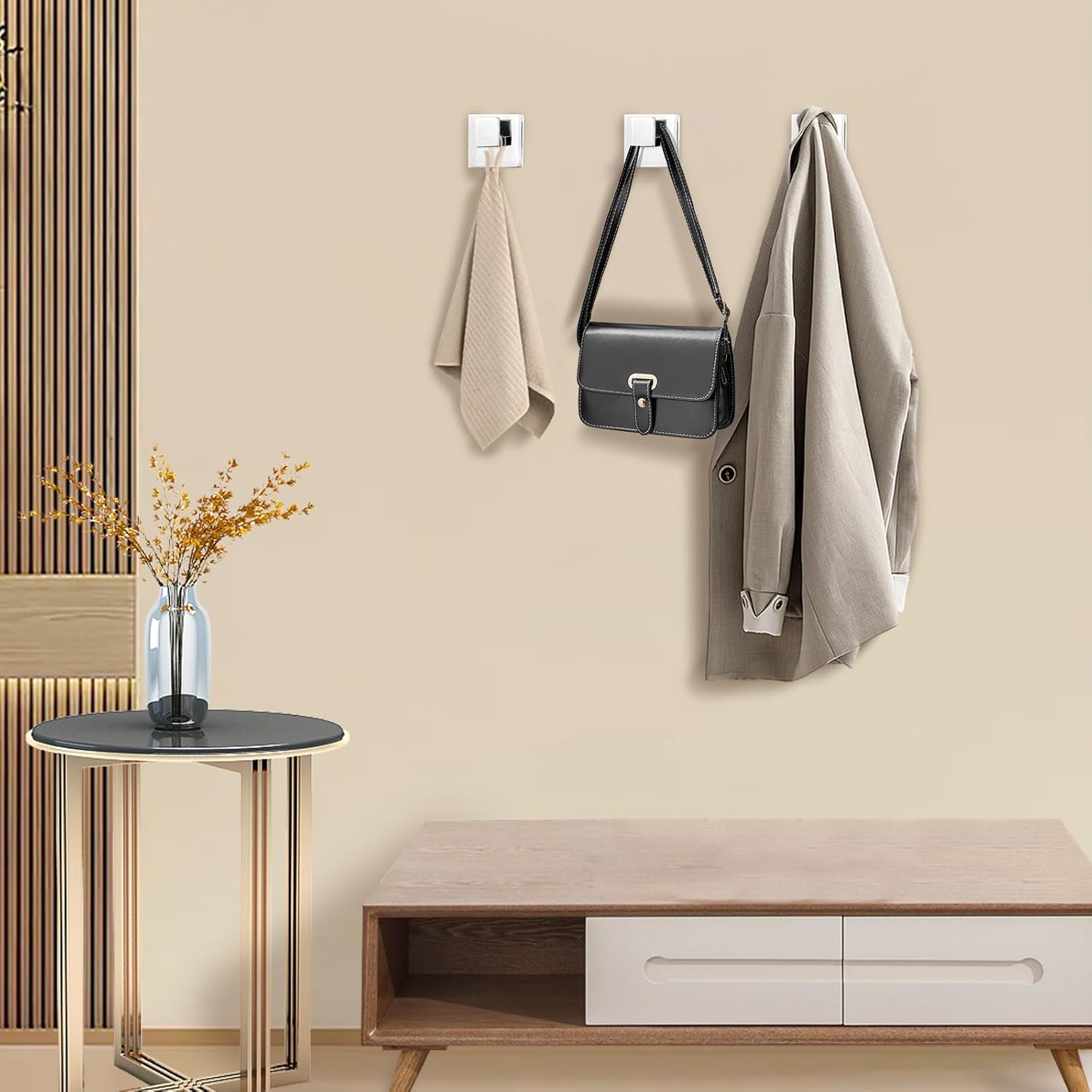 - Classy Appearance: This coat hooks set designed with a modern squared look, surface is brushed silver, which could be your bathroom & living room & bedroom & kitchen & pool & closet decor and holder