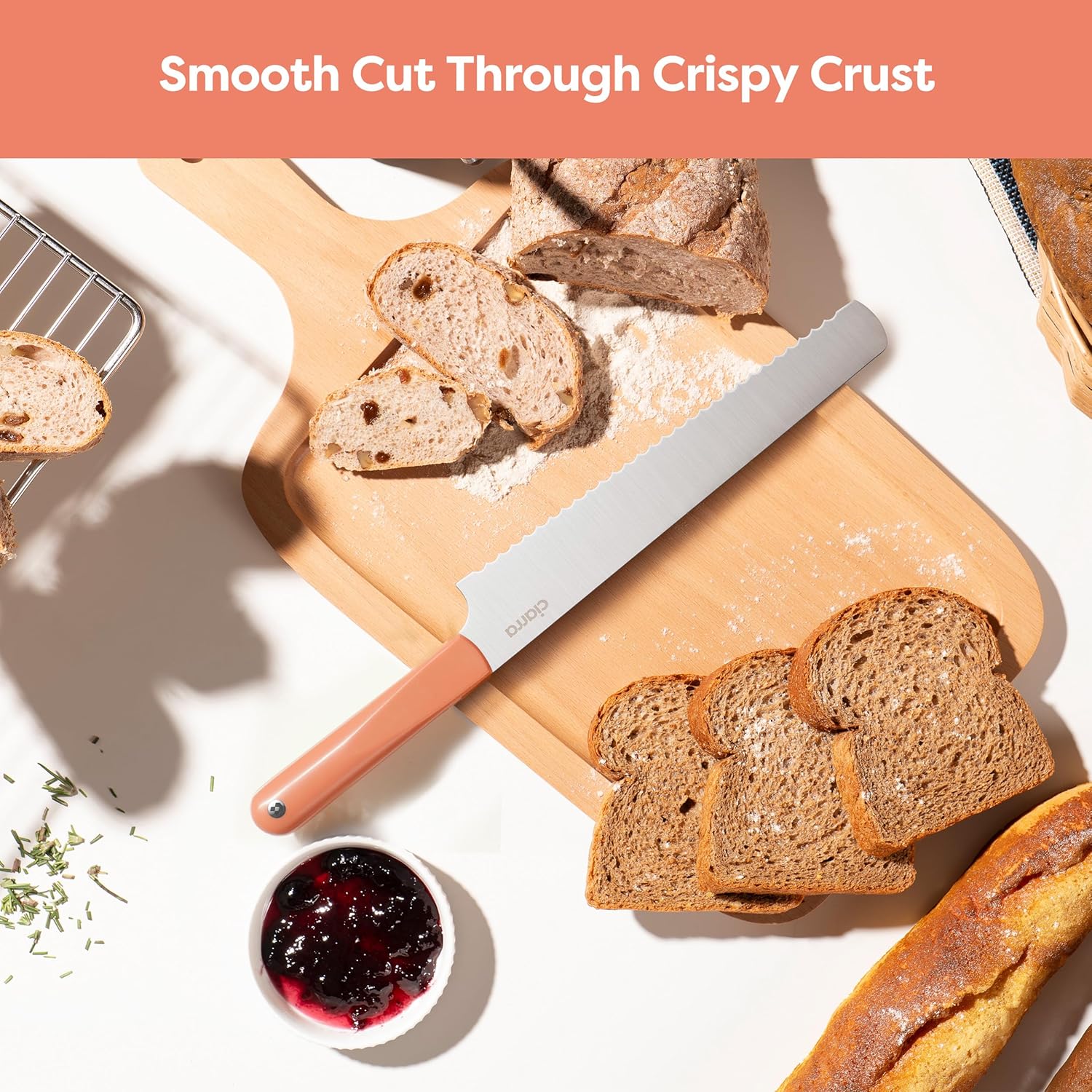 - 3 Pcs Muti-Purpose Knife Set: bread knife (9.5 inch) , chef knife (8.27 inch ), utility knife(4.33 inch).