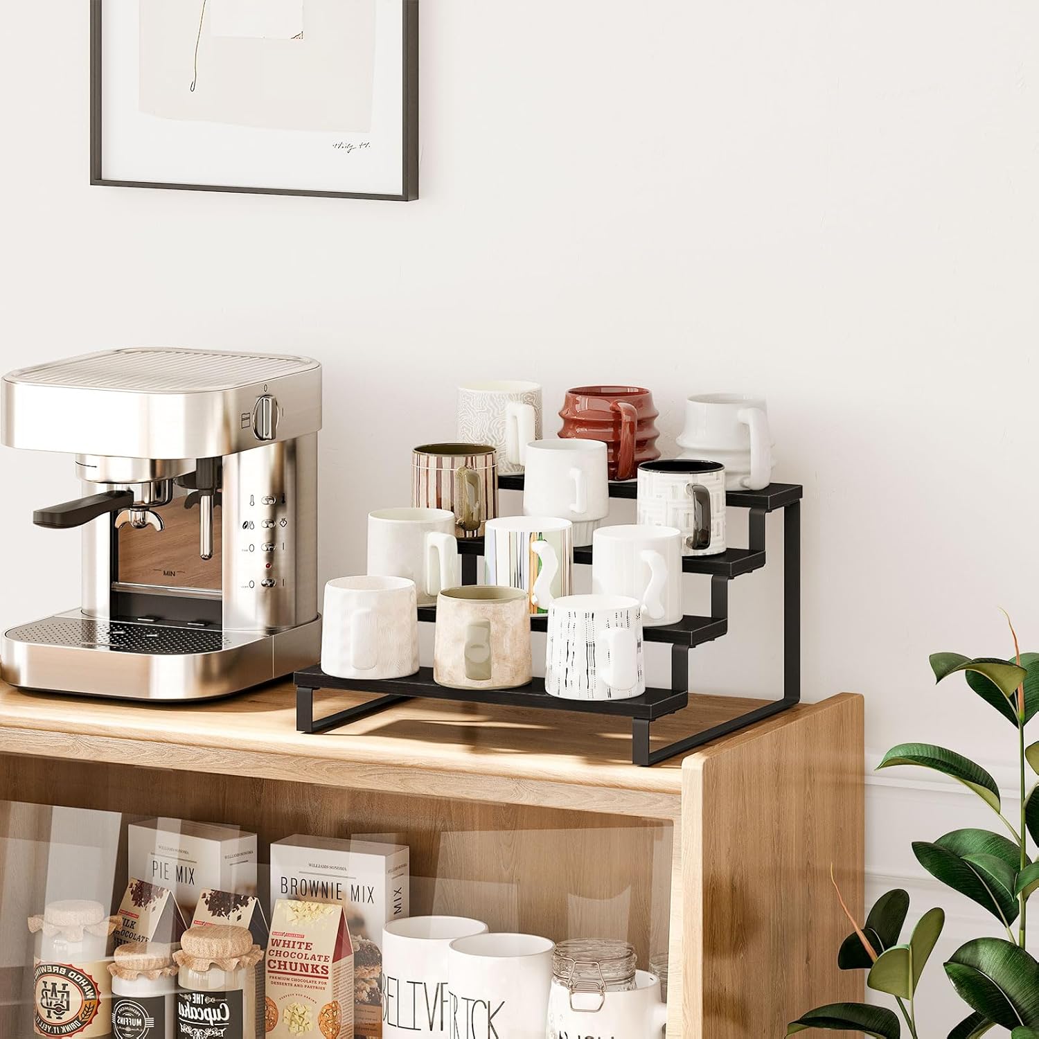 Giikin 4 Tier Spice Rack, Cabinet Organizer Shelf, Wooden Spice Rack for Countertop, Kitchen Counter Storage Shelves Cupcake Stand Holder Display Stand, Black