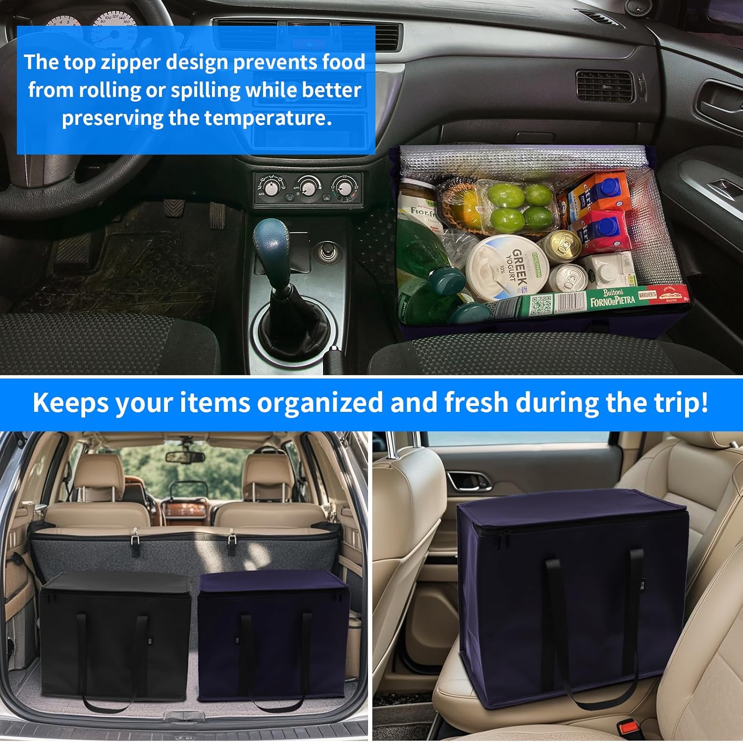 - 【Superior Insulation Technology】:Our insulated grocery bags with zippered top use advanced insulation technology, combining aluminum foil and thermal foam to keep food at the right temperature. Perfect for keeping items cold or warm during trips, shopping, or deliveries, these cooler bags insulated ensure your food stays fresh and at the perfect temperature. These insulated cooler bags are great for grocery shopping or food carriers for hot or cold food travel.