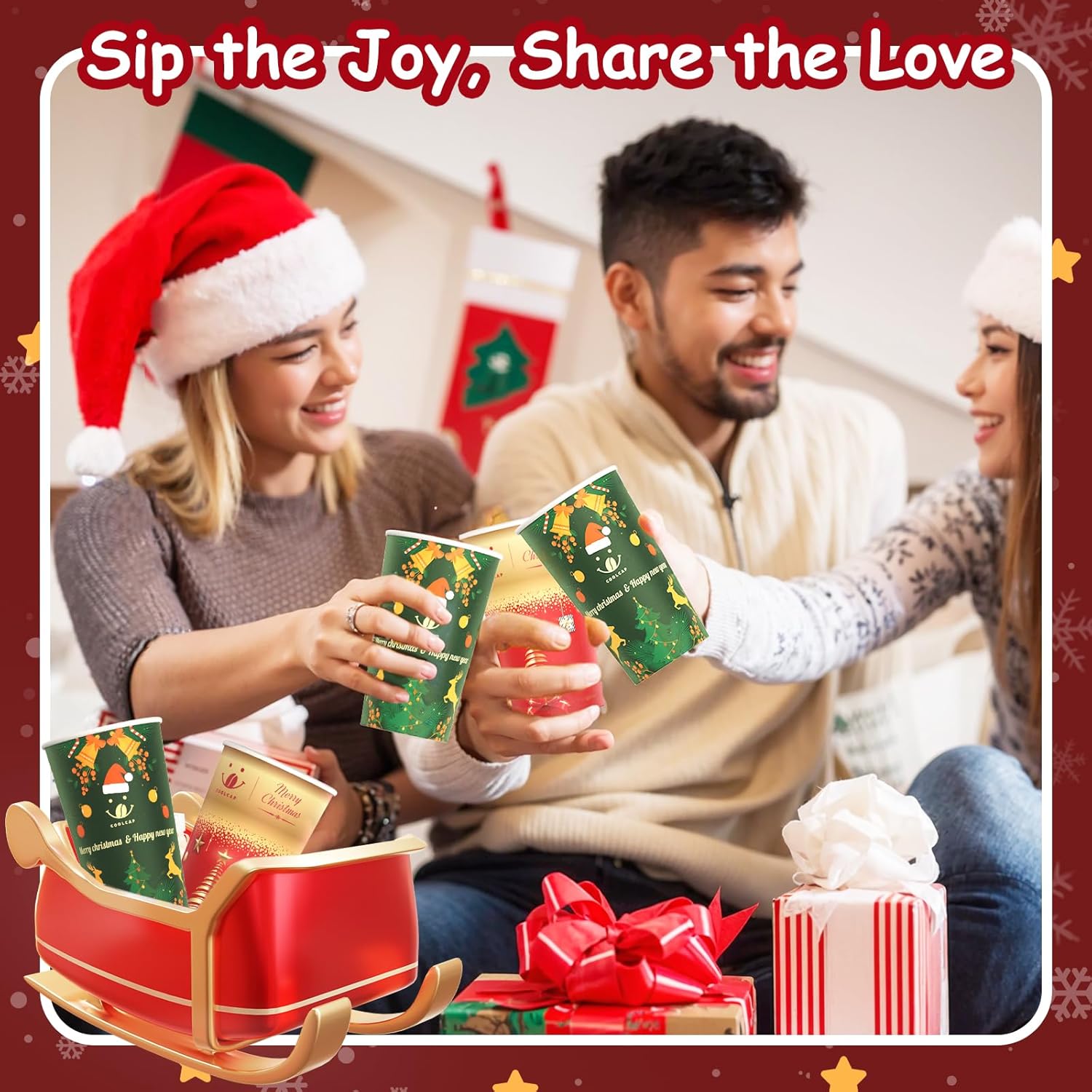 Christmas Cups, 50 Pack Party Decor, To Go Paper Hot Cups for Chocolate, Cocoa, Coffee (Green, 16 oz)