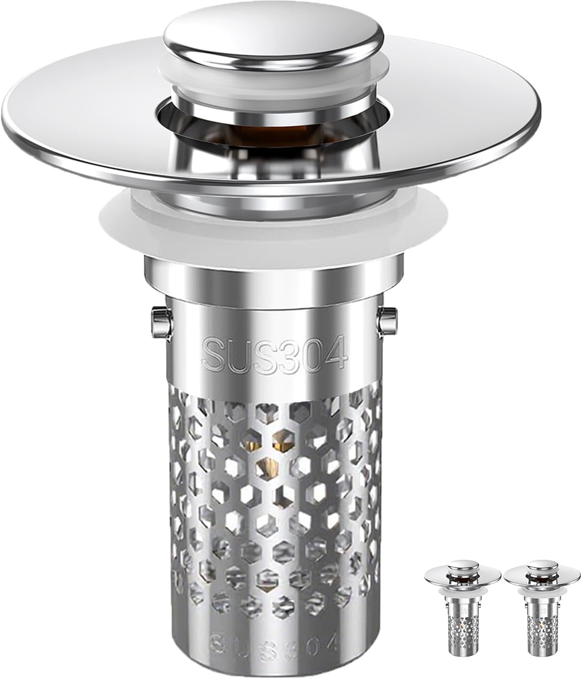Sink Stopper Hair Catcher, Pop-up Sink Drain Strainer with Removable Stainless Steel Strainer Basket Hair Catcher, Bathroom Sink Strainer for Bathroom Sink Stopper Replacement (New-2PCS)