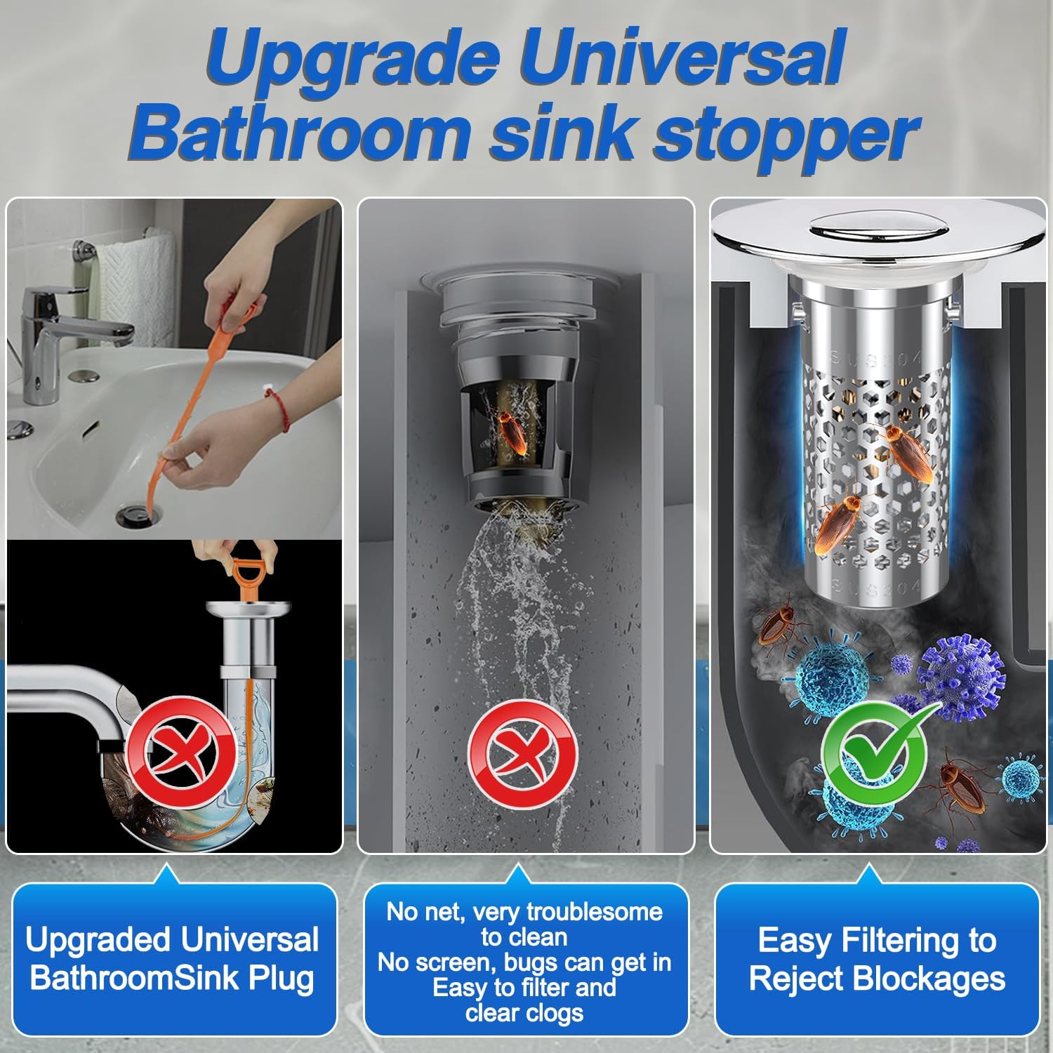 - 🔥 【2-in-1 Innovative Design 】Our sink bounce core drain strainer features an advanced 2-in-1 design that seamlessly integrates an anti-clogging basket. It combines clogging and filtration to effectively intercept hair and debris, prevent clogging, and ensure smooth drainage. With this smart design, you will experience hassle-free maintenance and an always clog-free sink