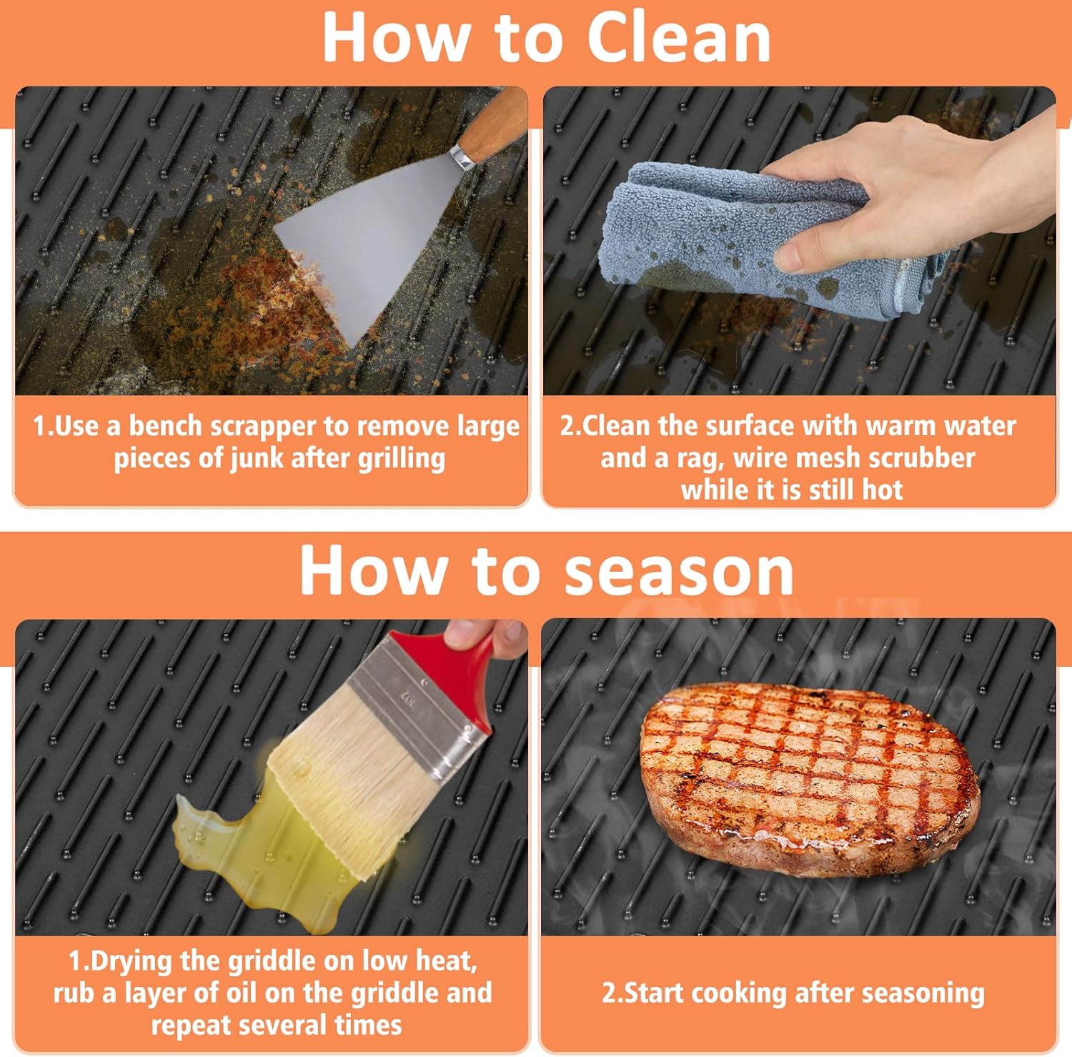 - Premium Material: Cast iron cooking griddle durable and long-lasting, offers a non-stick cooking surface that makes cooking and cleaning a breeze, simply wipe down the surface with a damp cloth or sponge, and your griddle is ready to use again