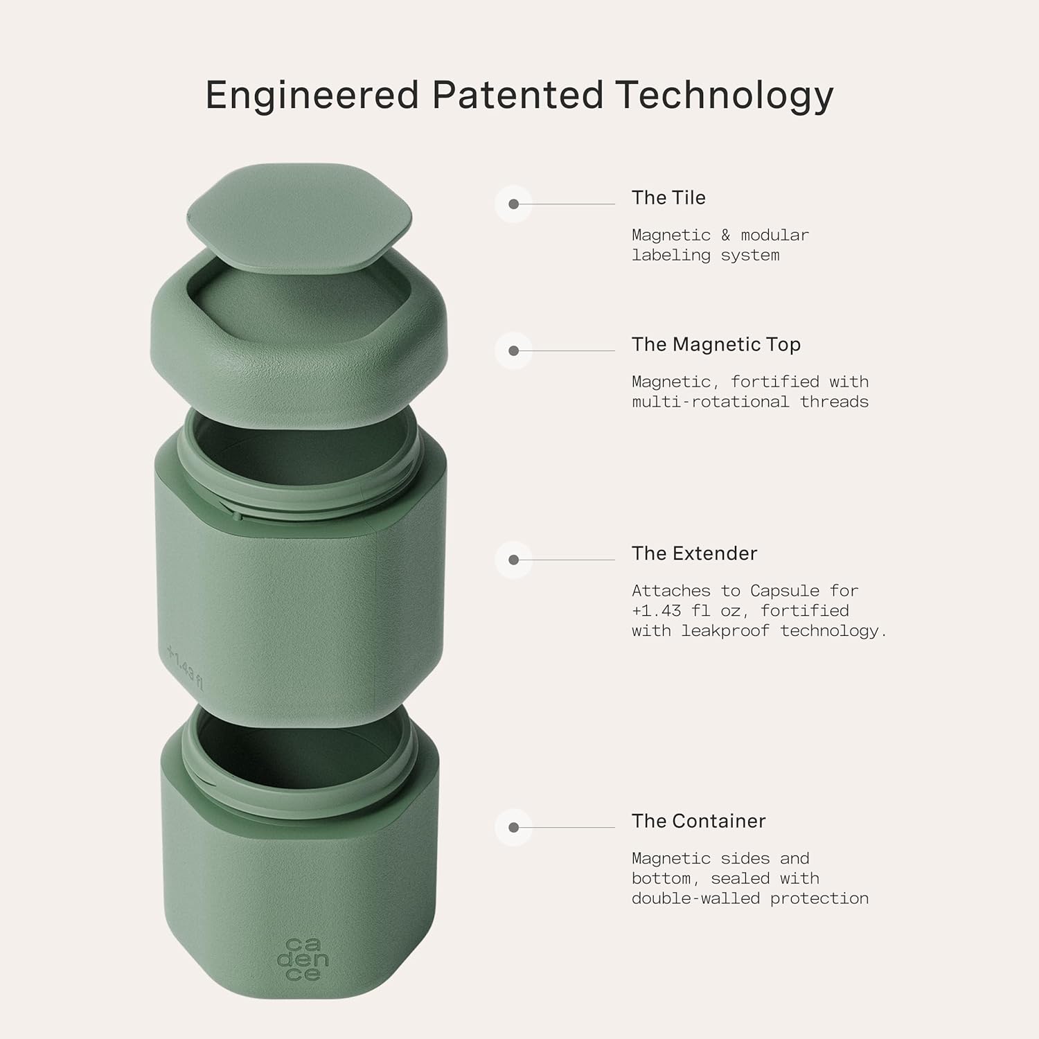 - PATENTED MAGNETIC DESIGN - Designed for seamless storage, our travel capsules feature a magnetic design that connects each container vertically or horizontally. They include magnetic labels that seamlessly swap between The Flex Small, The Flex Medium, and The Flex Large Capsules.