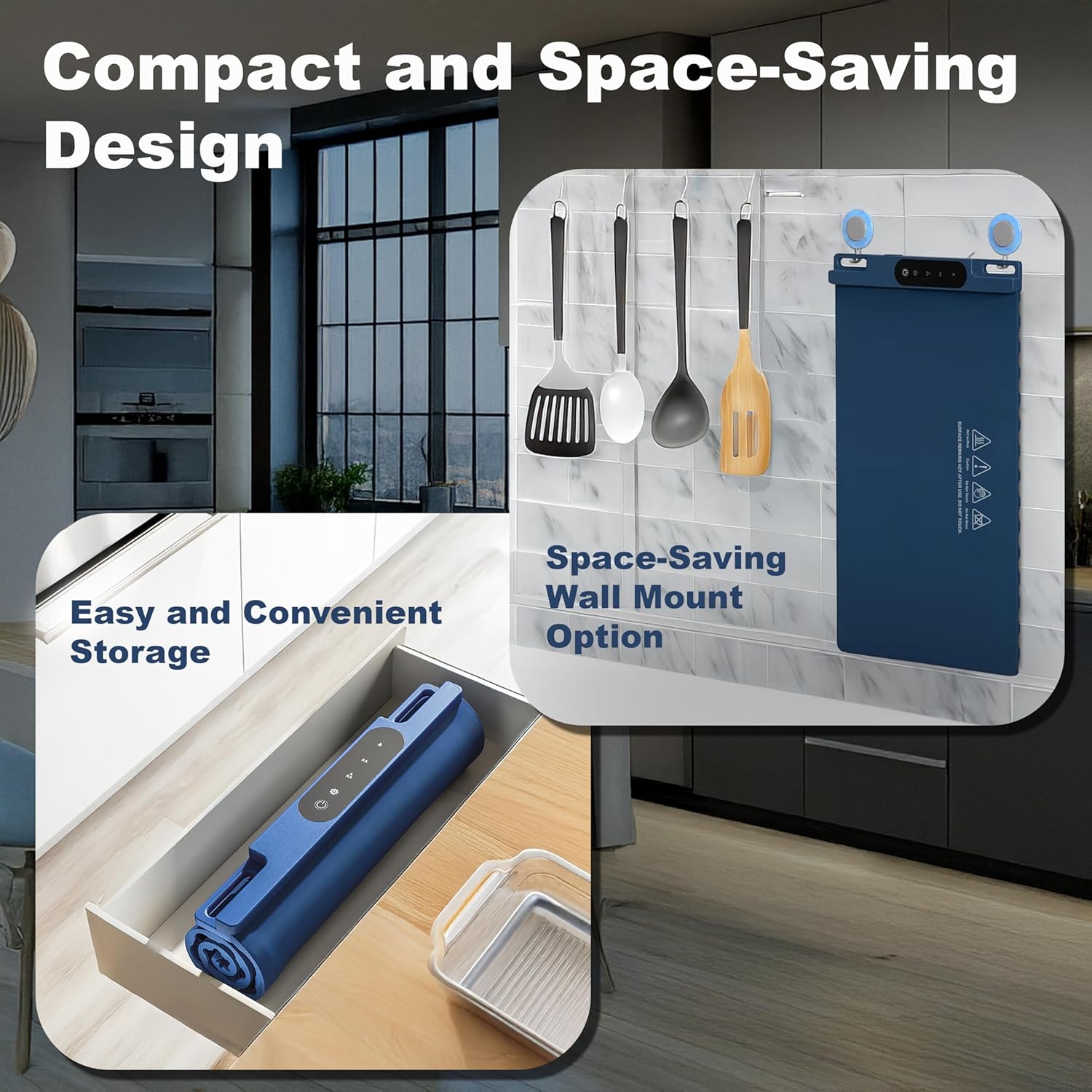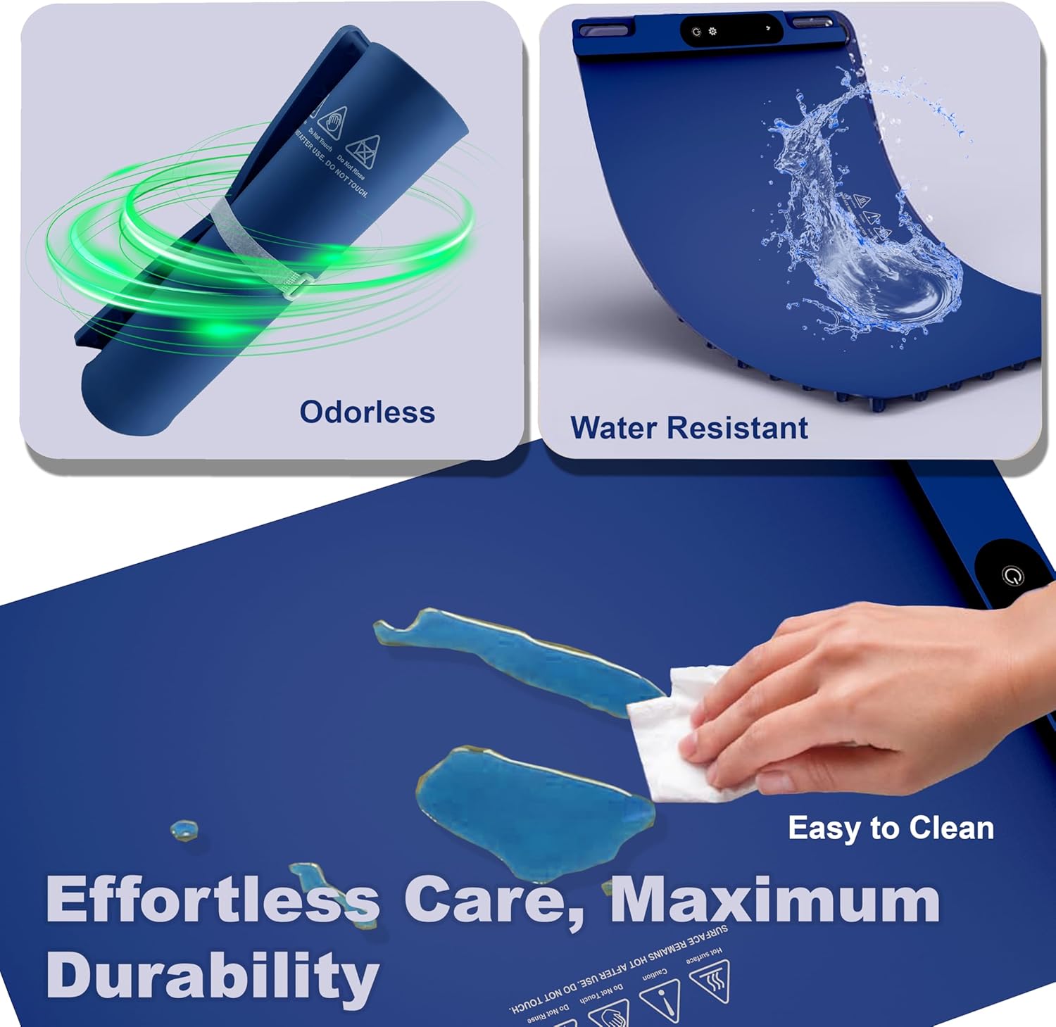 OMEO Food Warming Mat - Electric Warming Tray with 3 Temperature Settings and 1-4 Hours Timer, Full Surface Graphene Food Warmer, Premium Rollable Silicone Heating Mat Food, Gatherings, Parties(Blue)