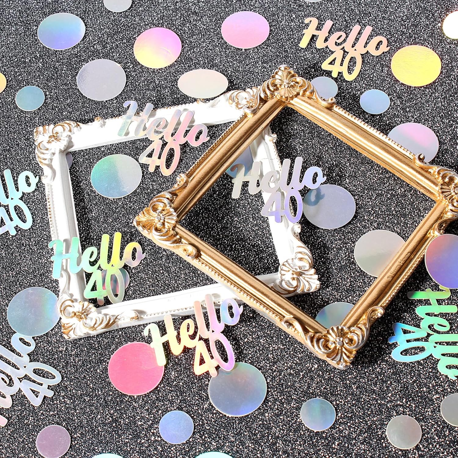 - Ideal for female 40th birthday table decorations.The shimmering silver hello 40 circle dot table confetti is shiny,perfect for winter wonderland birthday/wedding anniversary party decor,especially suitable for disco music themed birthday celebration.