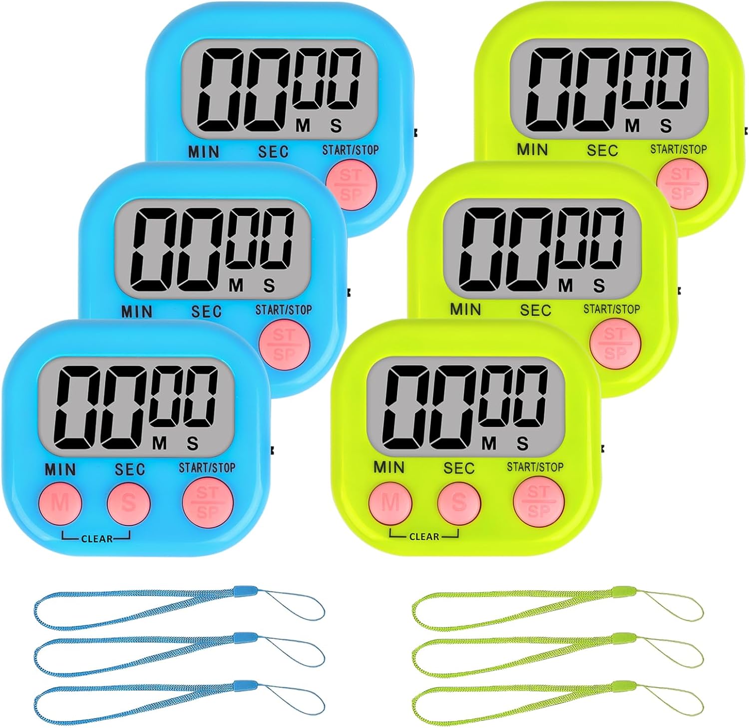 - 3 Blue & 3 Green Timer: Measures 2.124 * 2.28 ", large screen, large numbers, easy to read.