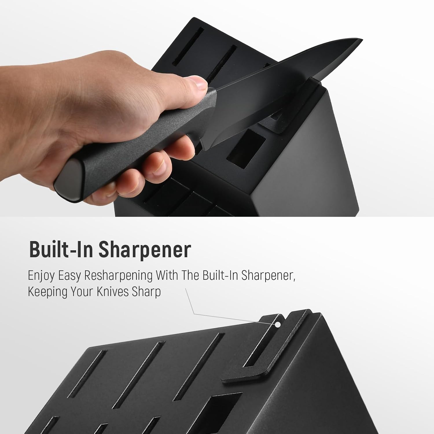15-Piece Kitchen Knife Set with Block – Chef Knives, Utility Knives, Steak Knives, and Built-In Sharpener (Black and Gray)