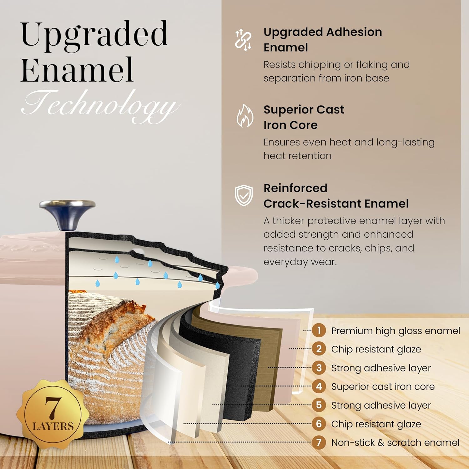 Nuovva Enamelled Cast Iron Dutch Oven Pot with Lid 6.4 Quart Non Stick Casserole Pot – Heavy Duty & Oven Safe up to 500° F for Bread Baking, Braising, Stews, Roasting – 28cm Oyster