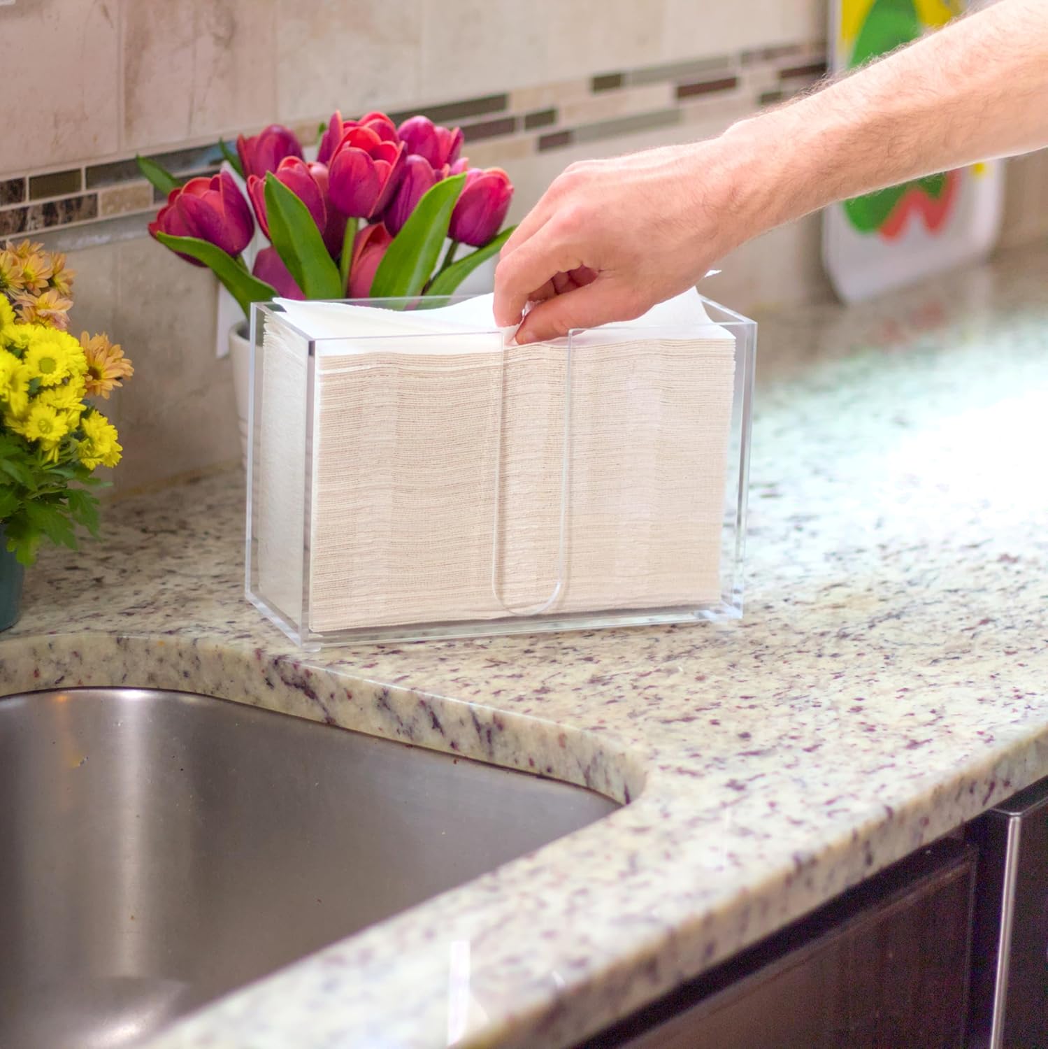 - Stylish Storage: Available in a range of color variations, this stylish tray enhances any décor while keeping your trifold towels or napkins easily accessible for guests. This clear paper towel holder is perfect for adding a touch of elegance to your kitchen countertop or office tabletop. Other great options include gold and black, offering versatility to suit any style preference.