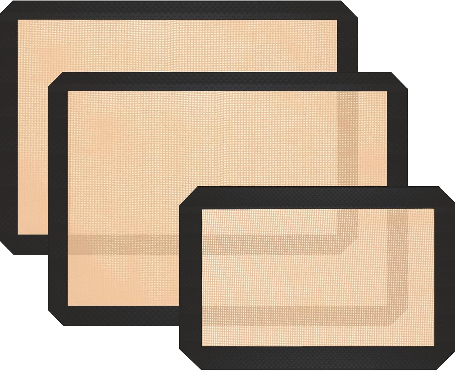 - [ MULTI-PURPOSE BAKING SET ] Silicone mat for baking set includes 2 half sheet baking mats (16.53 x 11.61in) and 1 quarter baking mat (11.81 x 8.26in). Silicone baking mats are great for macarons, pastries, cookies, breads, vegetables and meats. Make them a good helper for your cooking.
