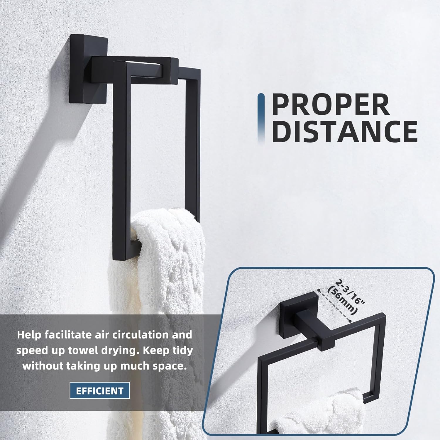 Bathroom Swivel Towel Ring Matte Black, Angle Simple SUS 304 Stainless Steel Hand Towel Holder for Wall Mount, 7.09 Inches