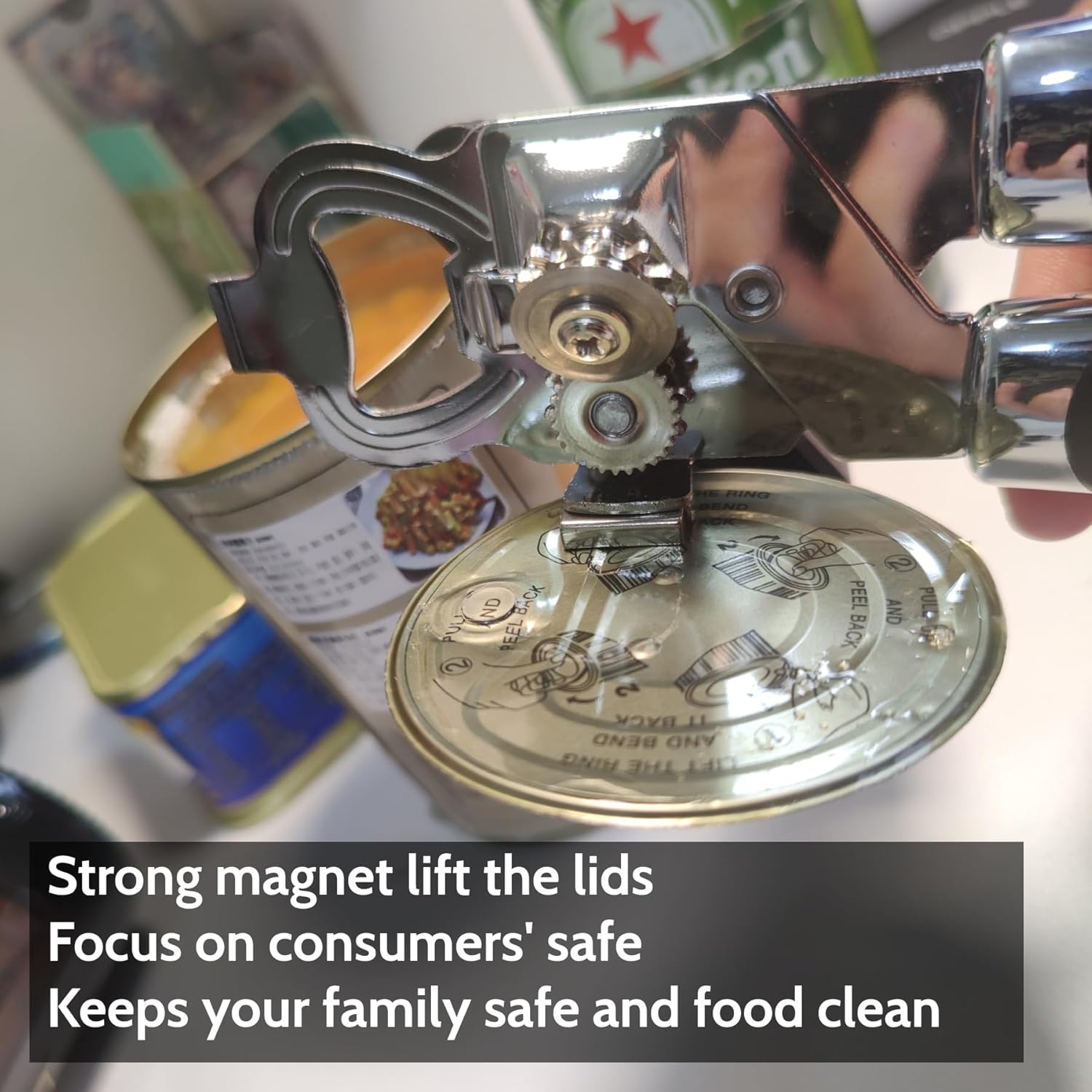- Magnetic Lift: Strong magnetic suction lift the lids after opening the cans,Once the lid has been cut, use the magnet built-in to pull the lid out,it keeps your fingers safe and food clean.Durable construction,Made of heavy-duty stainless steel with smooth edges to prevent scratches and rust.Handheld and portable, perfect for kitchens, camping, and on-the-go use.It’s best manual can opener suitable for left handed and right hand can opener very safety. DeeKleen can openers hand held, hand can opener manual,swing away can opener.