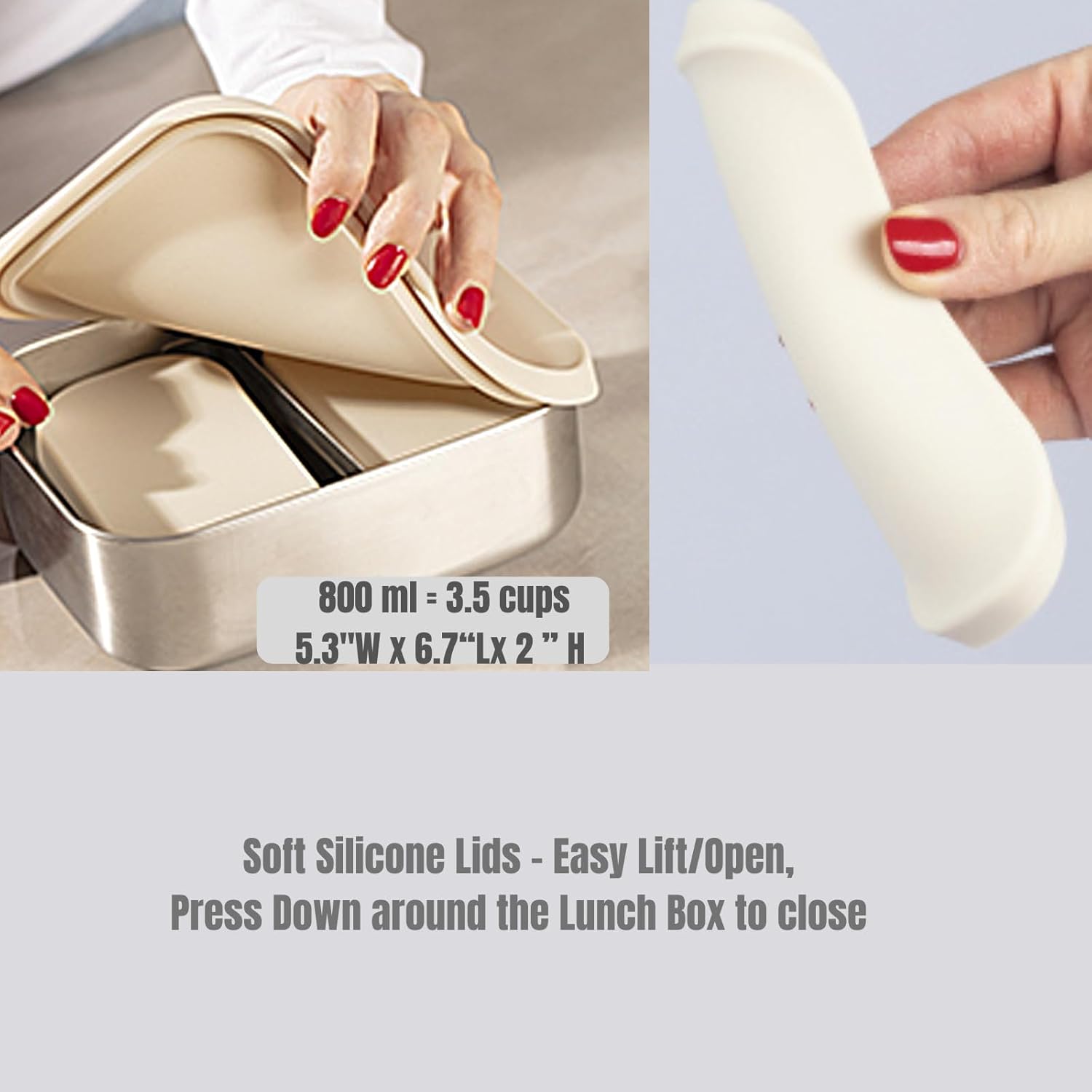 - FITS EVERY NEED -PICNICS, COLLEGE, OFFICE, WORLK, OUTDOOR - Perfect flexibility and serve as Stainless Steel Lunch Snack Containers | Leak Proof Stainless Steel Food Containers with Silicone Lids - Perfect Metal Food Containers with Lids . This Stainless steel bento box is designed in simple contours/ elegant colors for ages 12+