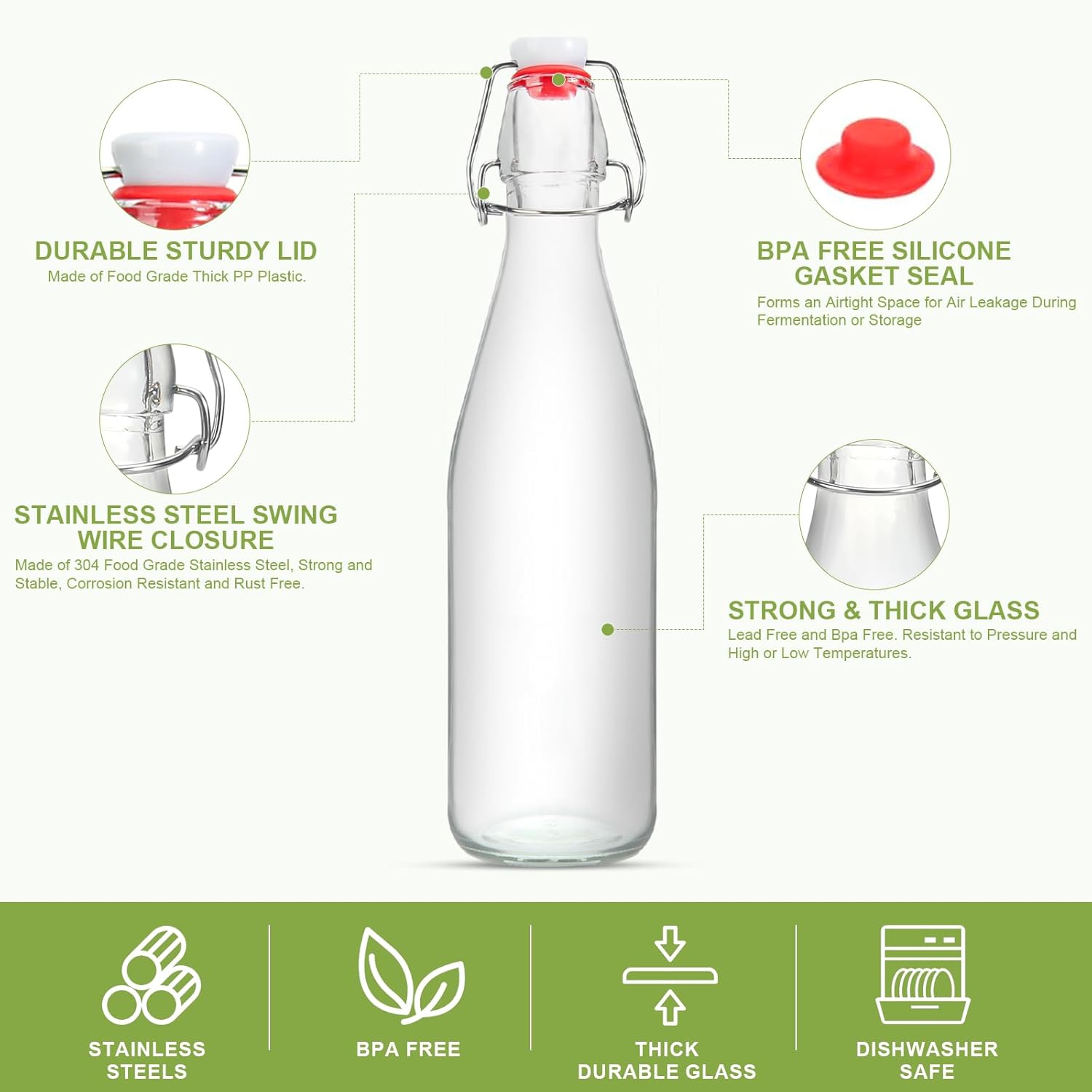 - Safe Packaging for Secure Delivery: Packaged securely with bubble wrap and durable partitions,these sealable glass bottles arrive safely at your door.Whether used as a thoughtful gift or in your home kitchen,these kombucha bottles and air tight glass bottles come with dependable support for your satisfaction.