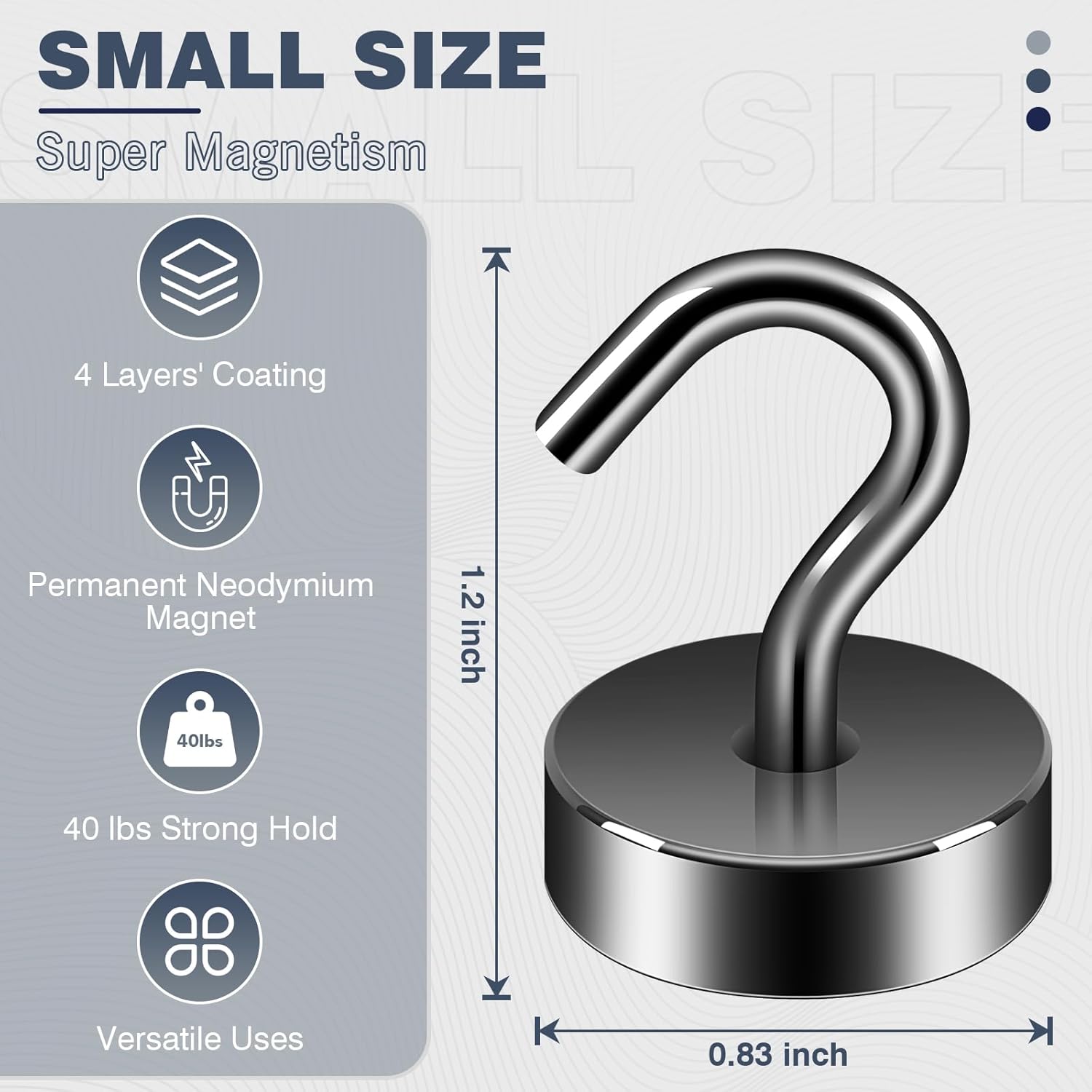 - ✔ VERSATILE USE- Neosmuk’s strong neodymium magnetic hooks were endowed with a strong capability for holding various items wherever there is iron or steel. This magnet hook is a perfect magnetic key holder. You can also hang your tools next to the toolbox with this magnetic hook. Our magnetic hooks are great for grill, pot, cup, utensils, and oven.