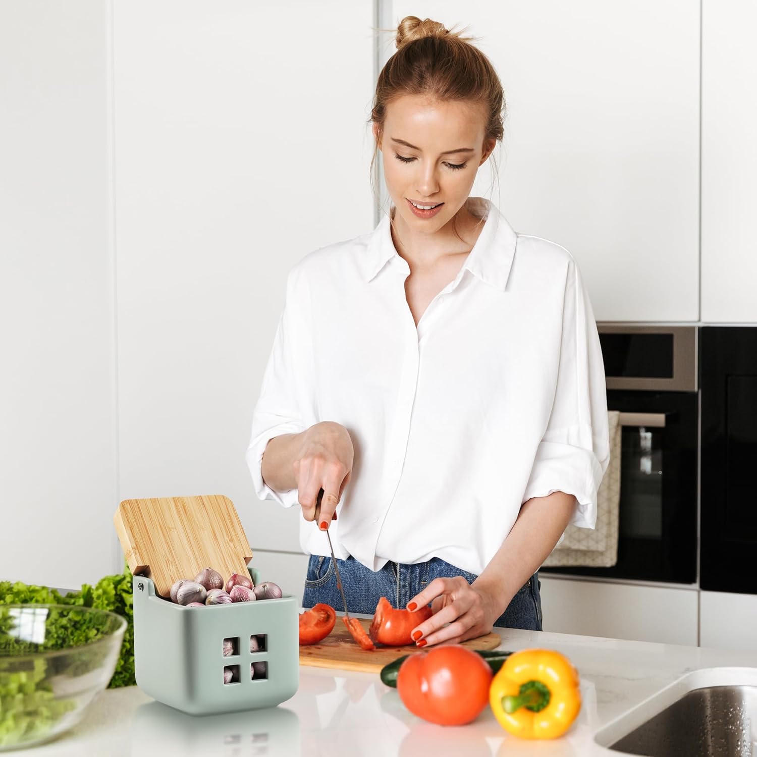 - 【Multifunctional Containers】: Not only for garlic savers, also tiny exquisite containers to store onion, ginger, and potato, an ideal kitchen storage device for you.