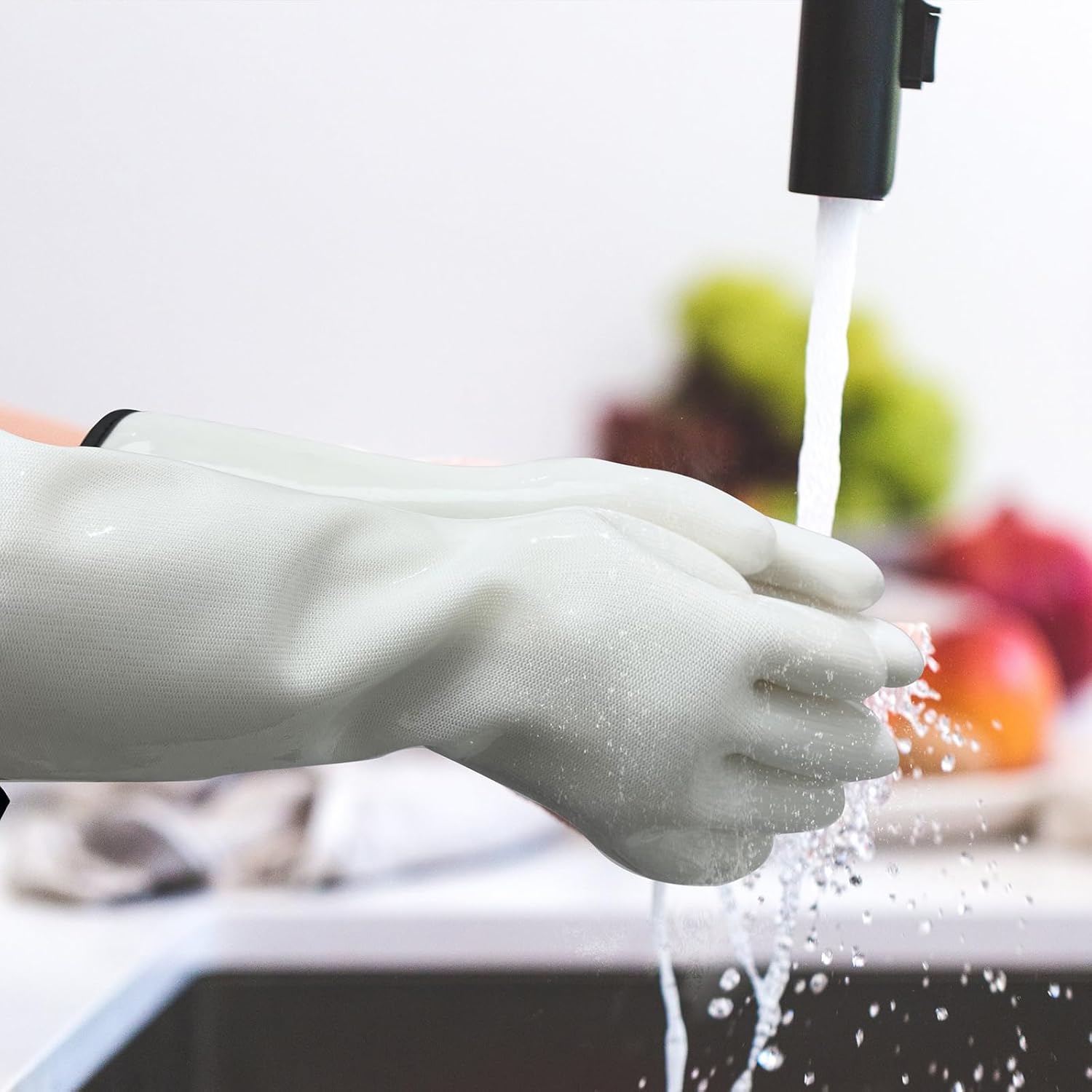 - 【Easy to Clean】You can simply wash thses kitchen gloves while wearing them. Water wipes off easily, and they dry quickly with one swipe of a towel. Additionally, the silicone material does not retain odors.