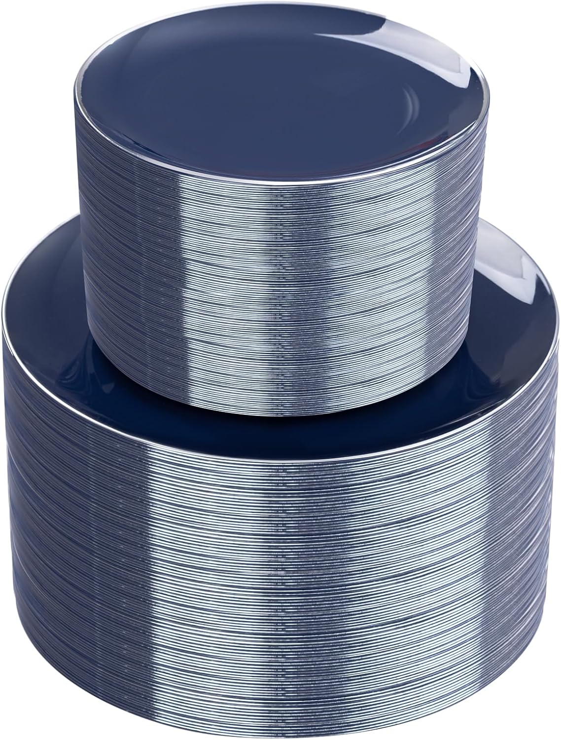 - RELIABLE MATERIAL: Our navy blue plates are made of high-quality food-grade plastic, BPA-free! These blue and silver plates are sturdier than paper plates and less likely to leak
