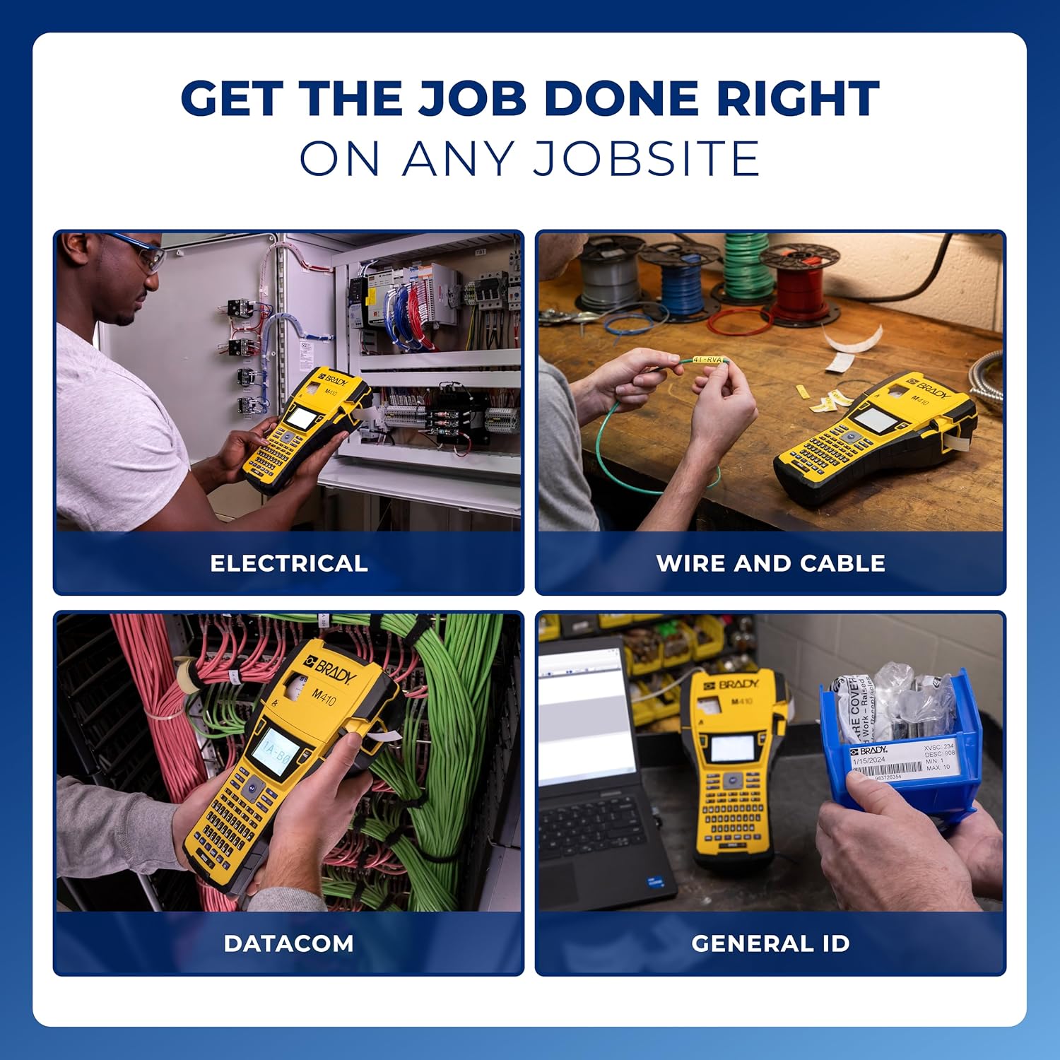 Brady M410 Handheld Portable Industrial Label Printer, 1" Wide Labels, Single Color Thermal Printing, for DataCom, Electrical, and Laboratory, Yellow/Black, 11.5" H x 6" W x 3.5" D