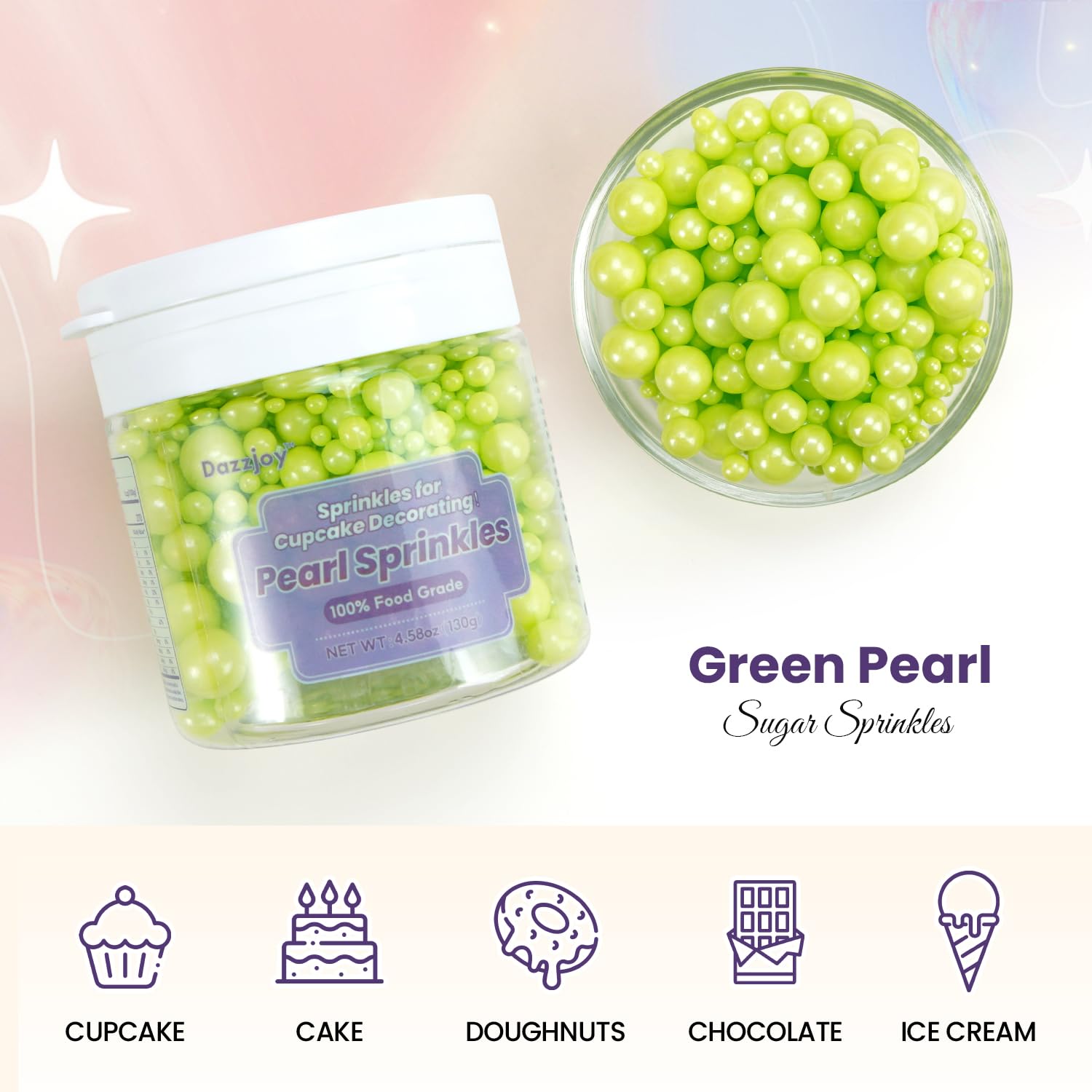 Dazzjoy Edible Green Pearl Sprinkles, Mix Size, 130g/4.58oz, Cupcake Toppers, Cake Decorations, Ice Cream, Easter, Wedding Party Valentines Easter Supplies