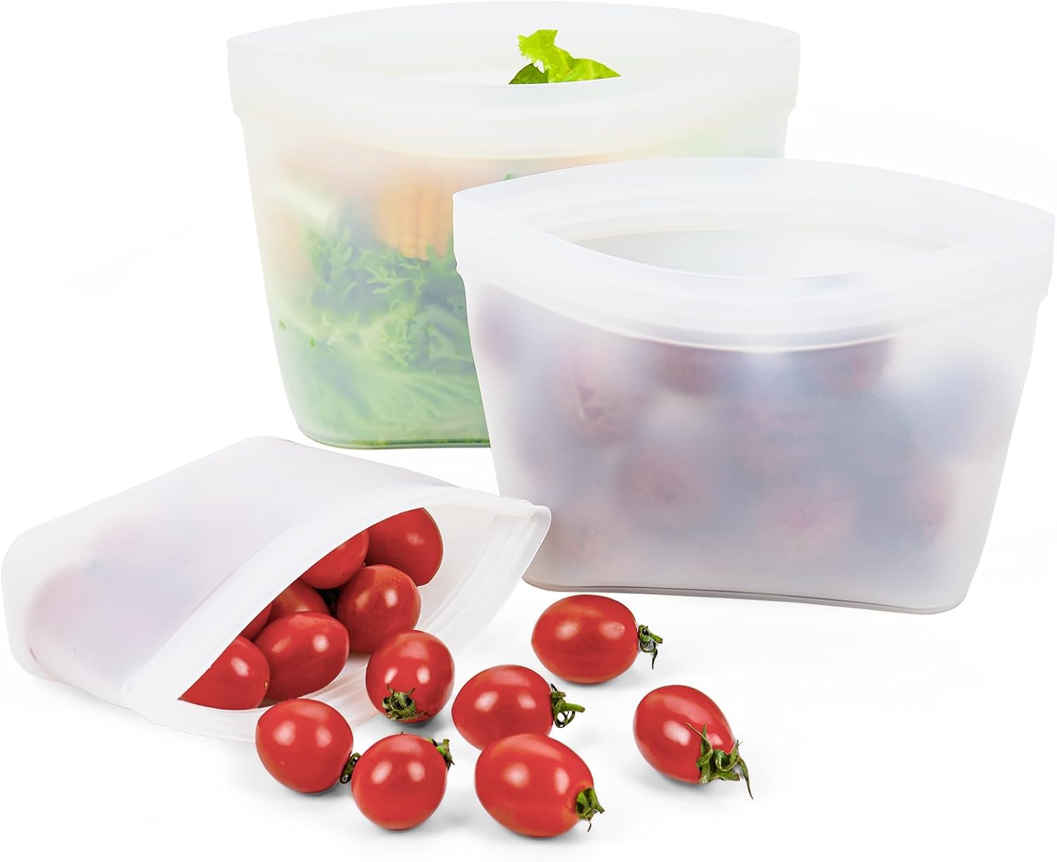 Silicone Bags for Food Storage, Reusable Zip Lock Silicone Food Storage Containers Stand Up Snack Bags, Freezer Microwave Oven Dishwasher Safe, Plastice BPA-Free 3 Pack(40oz 20oz 12oz)