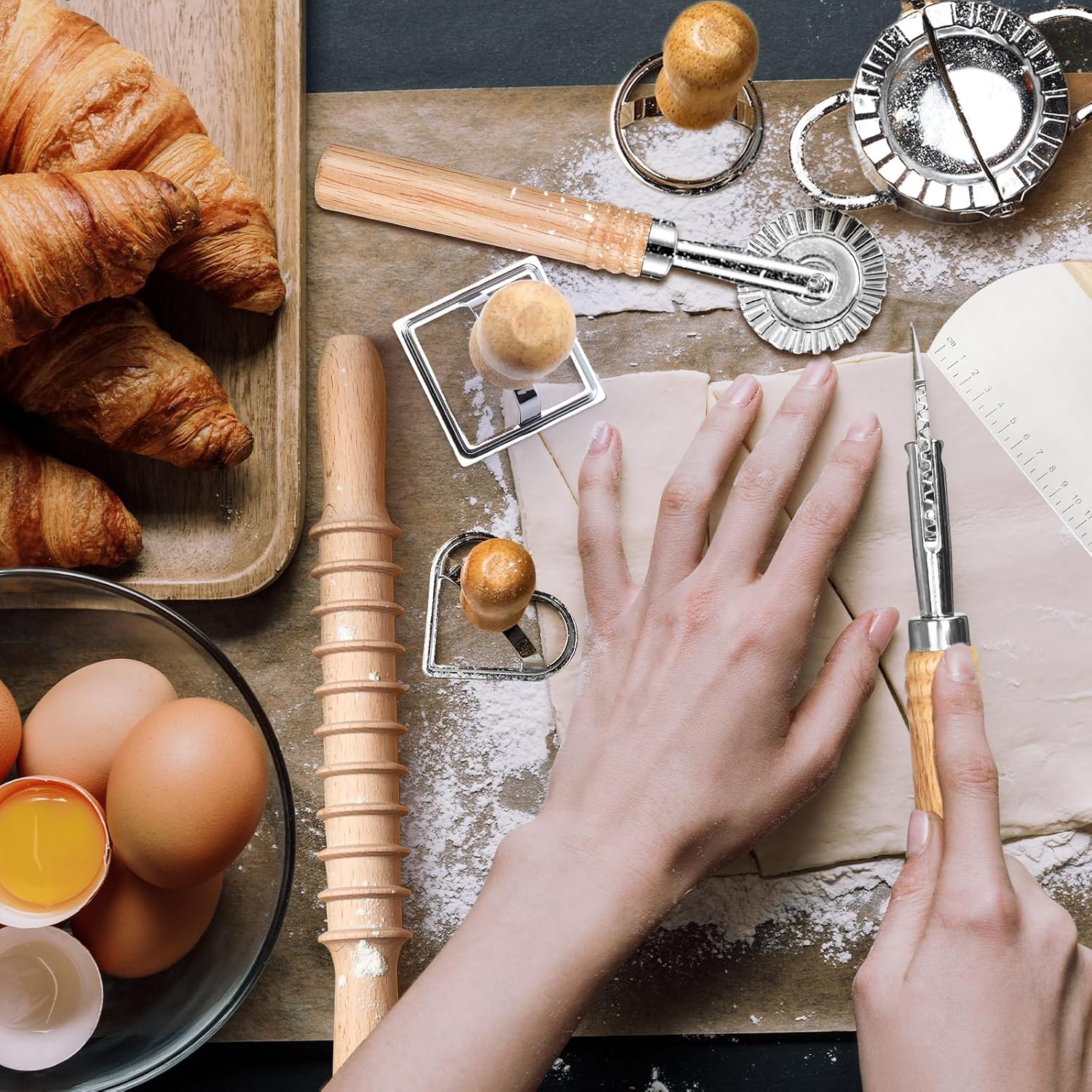 - Versatile and Multi-Purpose:This pasta-making set is designed for durability and precision, combining ergonomic wooden handles, high-quality stainless steel, and sturdy alloy components. The thoughtful design minimizes hand fatigue while maximizing functionality, featuring grooved edges for clear imprints and multifunctional tools for mixing, rolling, and cutting dough. Its superior craftsmanship is perfect for home chefs, ensuring long-lasting performance and an exceptional culinary experience.