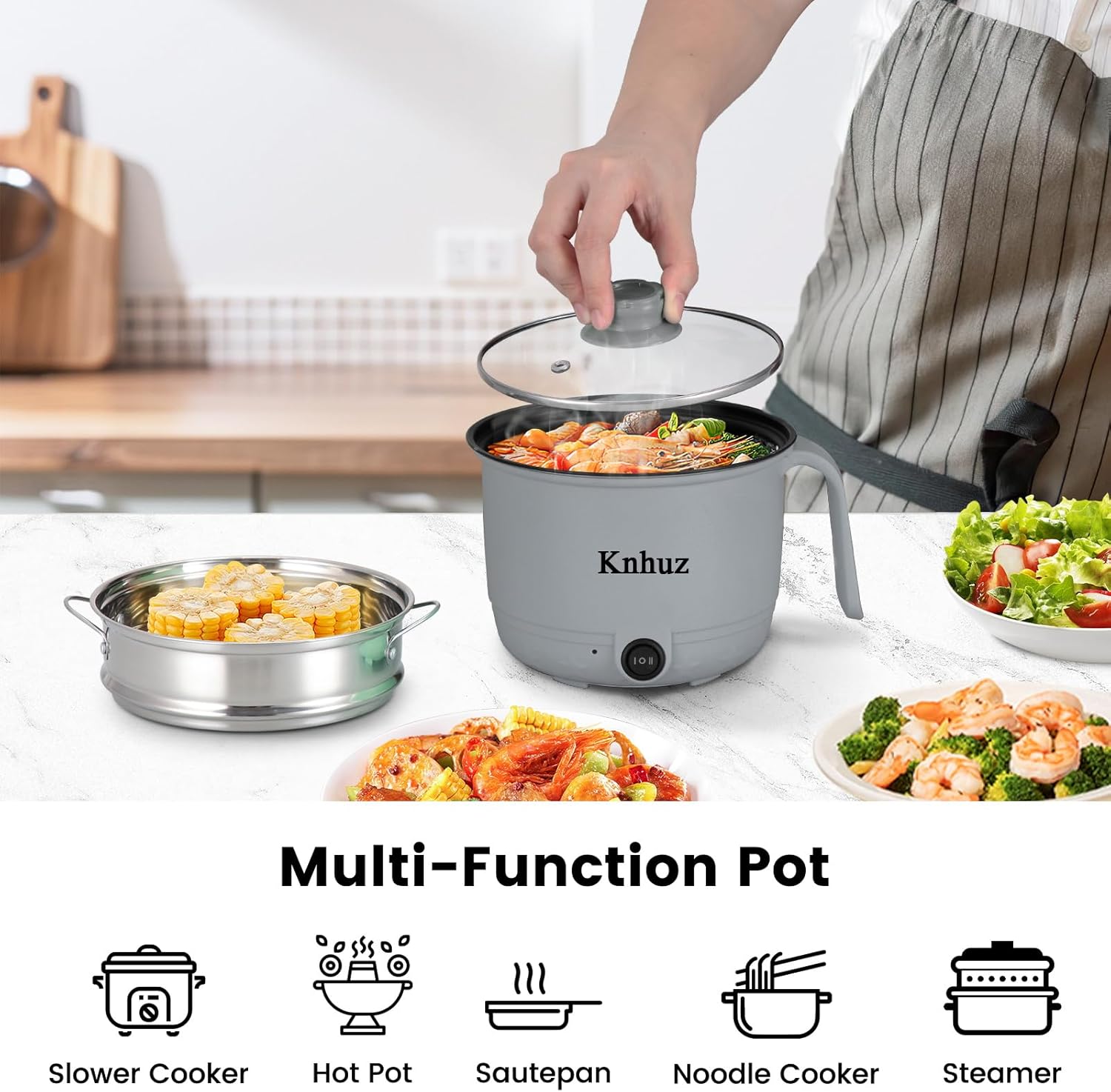 - 【Dual Safety Protection】Knhuz electric pot uses 360° round embedded heating element technology to heat food evenly and finish heating faster than ordinary pots.Equipped with overheating protection and boil dry protection technology,the ramen noodle cooker will shut itself off when the temperature is over the selected value or there’s no water inside. Please feel free to contact Knhuz service team if you have any questions during use.