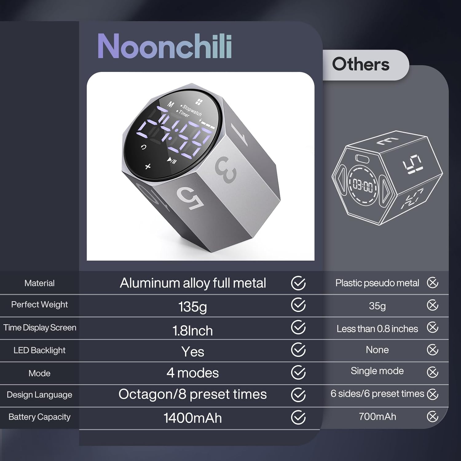 - 【Unique Pomodoro Timer】Pomodoro timer is made of aluminum alloy with a stylish and simple matte texture. The 1.8 In LED large screen digital display allows you to quickly confirm the time. Its screen can rotate automatically, and the scroll timer is set to the time you want. The screen will also rotate until it stops at the exact time, which is very convenient and interesting.