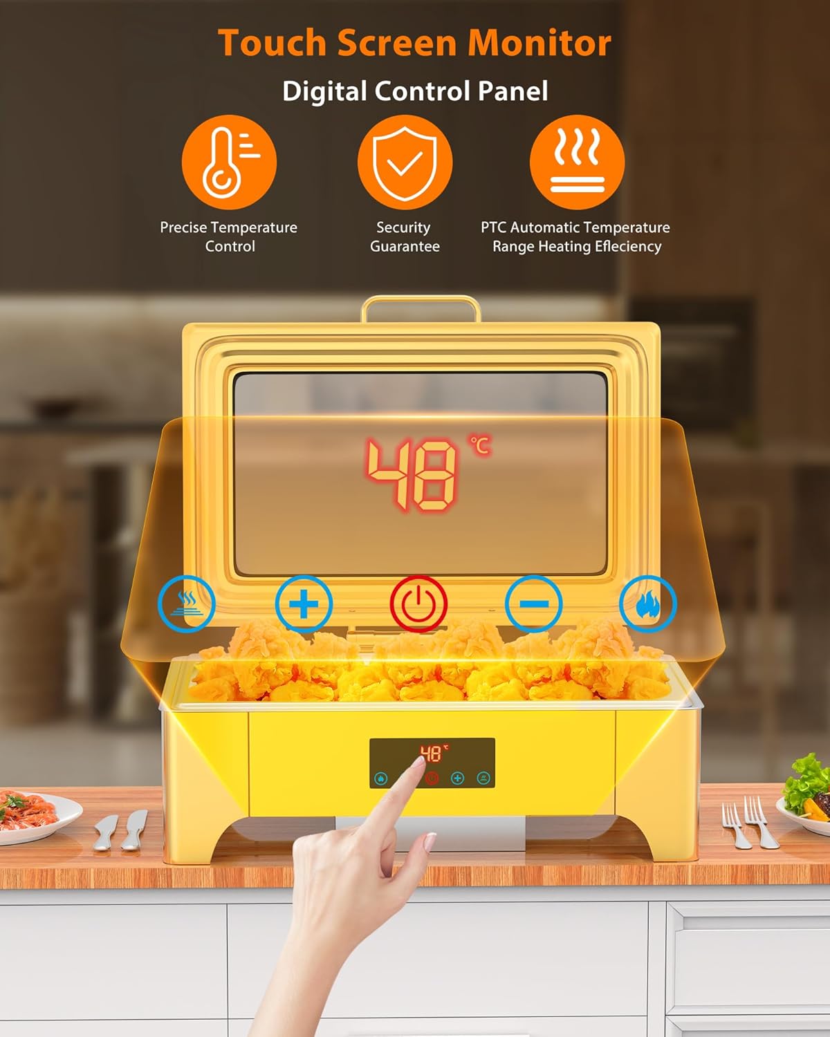 Electric Chafing Dish, 9QT Full Size Touch Screen Chafing Dishes for Buffet Roll Top Set Food Servers and Warmer with Glass Lid for Catering, Parties, Weddings, Gold