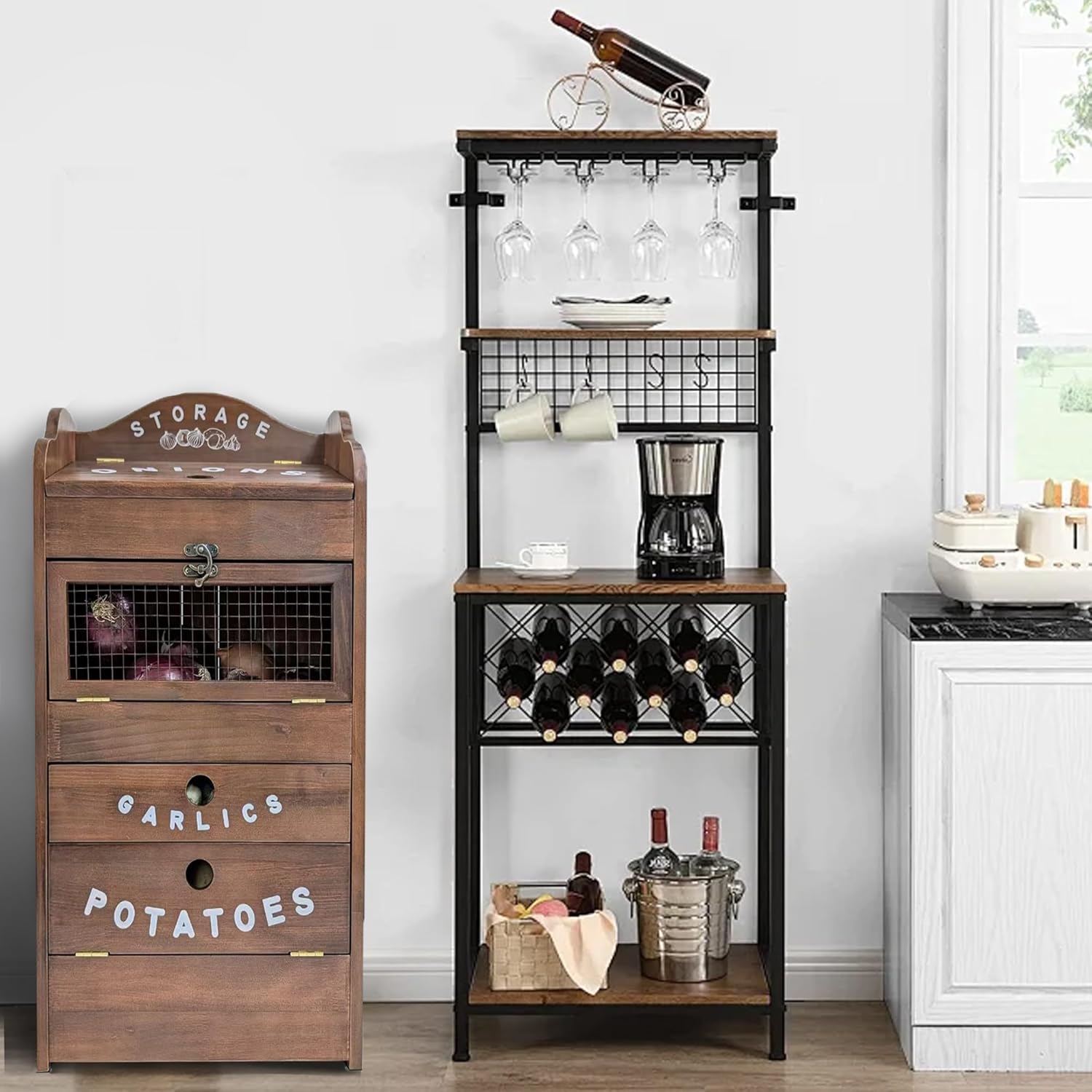 ARTAWEIN Pine Wood Veggie Bin for Potato, Onion and 1 Garlic Drawer Vegetable Box for Kitchen Storage, Solid Wood Vegetable Bin 13.77" L X 7.1" W X 29.3" H (Rustic Walnut)