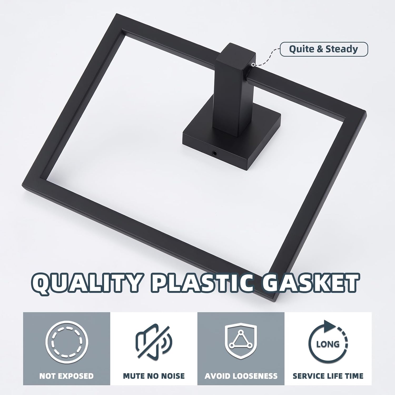 - STYLISH TOWEL HOLDER: towel rack for bathroom is exquisitely designed in a convenient way for holding towels. With its matte black square towel ring design concept, it becomes a practical bathroom hardware addition for different scenarios