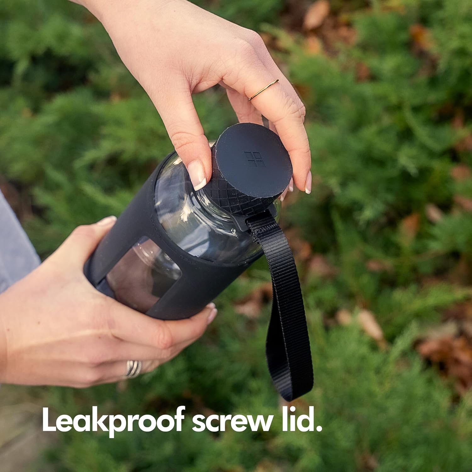 - DURABLE WITH PROTECTIVE SILICONE SLEEVE – The protective silicone sleeve helps absorb shocks, reducing the risk of breakage. Made from sturdy borosilicate glass, this clear water bottle is built for long-term, everyday use.