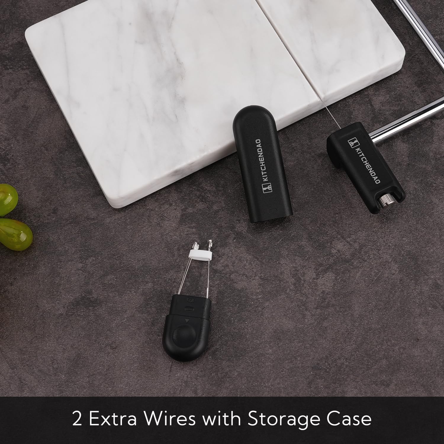 - 50% Stronger Wires: KITCHENDAO cheese slicer adopts the 2nd gen wire fixing mechanism which makes the wire be fixed on 3 stress points, while the other product’s wire is fixed on only 2 stress points, which makes our fixing strength increased by 50%, and the wire won’t be easily deformed