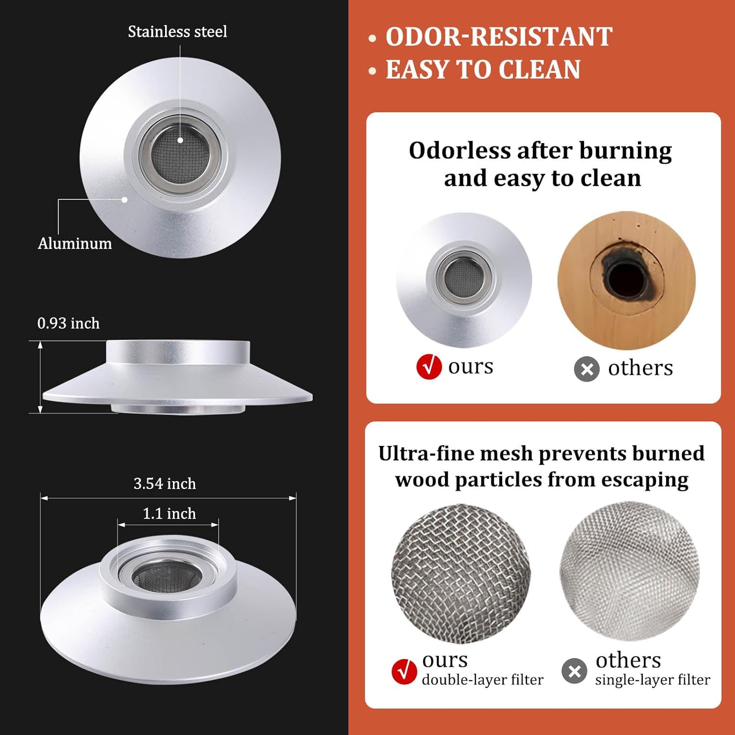 - PREMIUM QUALITY ACCESSORIES:This bourbon smoker kit has apple, walnut, cherry and oak 4 different flavors of wood chips, these flavored wood chips are all natural, without adding any flavorings, smells fresh, easy to burn, and a lot of smoke, you can easily add flavor. The stainless steel mesh screens is thick and has dense mesh, so you don't have to worry about the wood chips falling in to your drink after burning