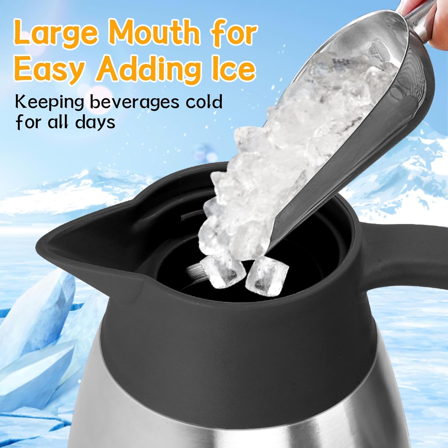 - 【12HR WARM& 24HR COLD】This thermal carafe is made of double-wall stainless steel vacuum insulation, which allows for maximum temperature retention; keeps your beverage 12 hrs Heat retention or 24 hrs cold retention.