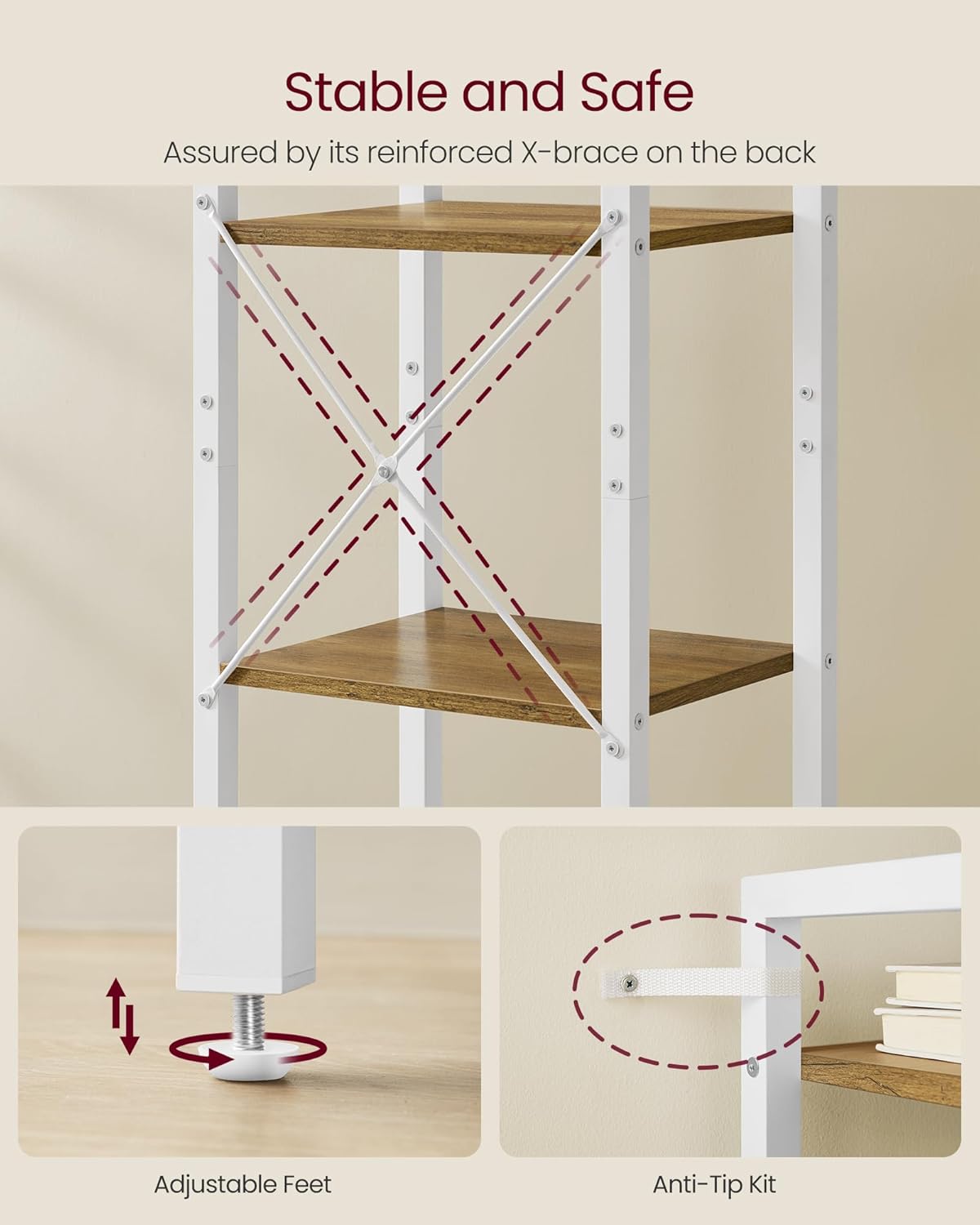 - Stable and Safe: X-brace reinforces the structure, adjustable feet keep this tall book shelf balanced on slightly uneven floors, and the included anti-tip kit will help you fix it to the wall for greater stability and safety