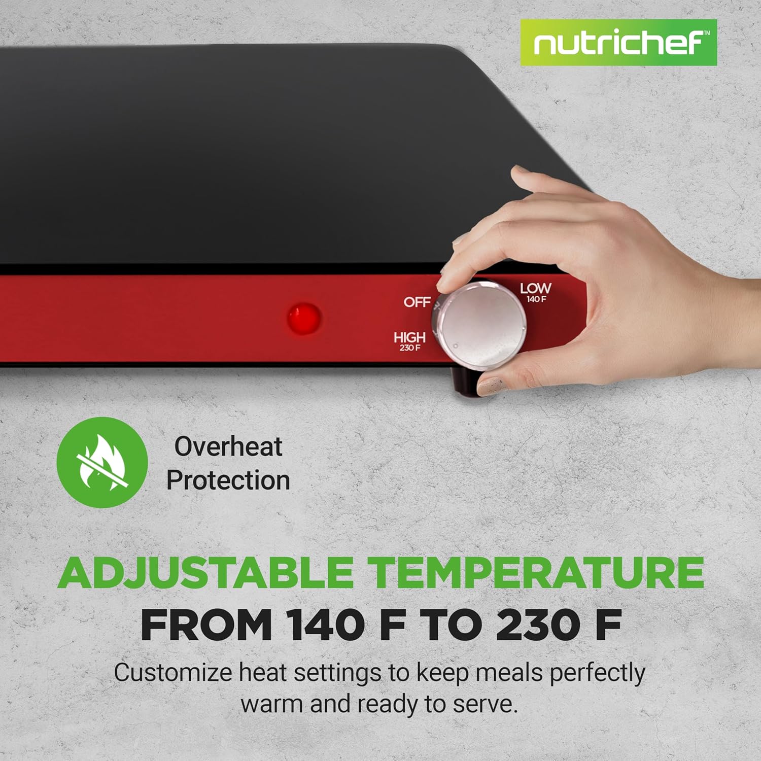 NutriChef Electric Warming Tray | Glass Surface Hot Serving Tray | Adjustable Temperature 140°F to 230°F | Energy Efficient & Space Saving | Perfect for Buffets,Parties & More | 21.2 x 16.5 IN | Red