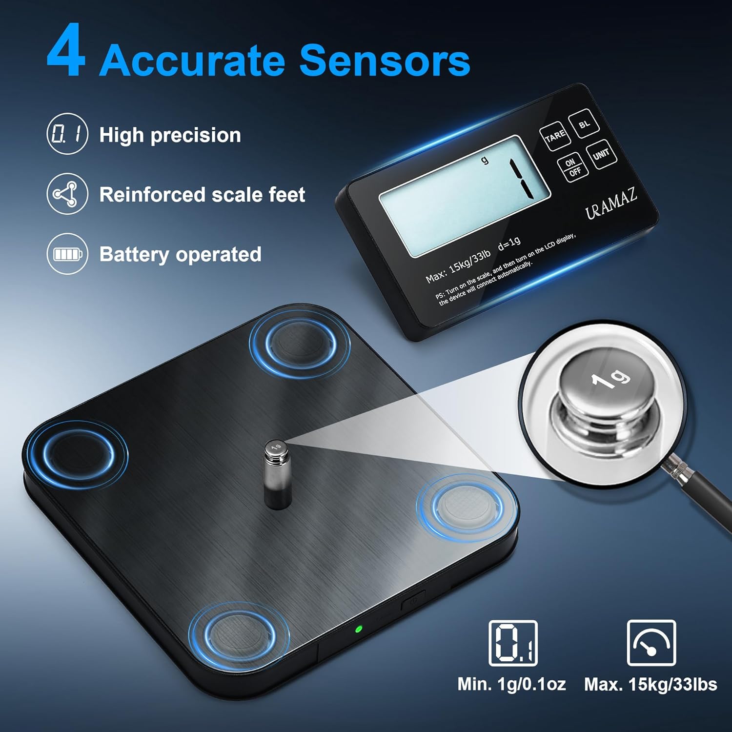 - Special Feature : 33LB Capacity, Auto Shut Off, Detachable & Backlit Display, Large Display, Tare Function
