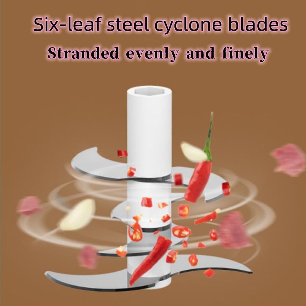 - 【EFFICIENT AND VERSATILE】: Our electric garlic press is a high-performance kitchen tool that can quickly chop garlic, seasonings, nuts, onions, vegetables, peppers, minced meat, and even ice cubes. Its 6 sharp blades and 45w motor make it easy to process small amounts of food for cooking, children's food supplements, and smoothie drinks.