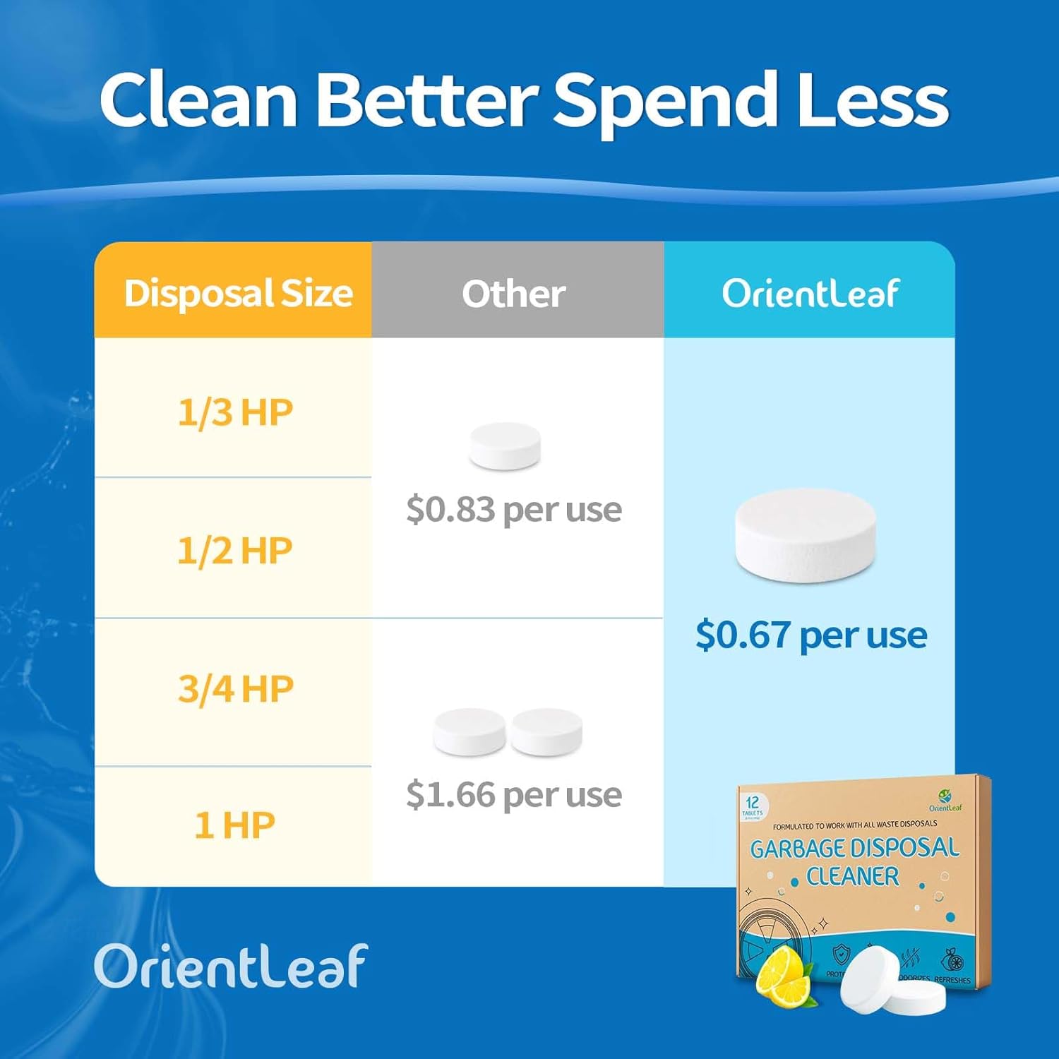 - Powerful 20g Cleaning Tablets – OrientLeaf XXL size tablets, no need to use multiple pods for one cleaning session! Each tablet is perfectly sized compatible with kitchen waste dispoal models including InSinkErator, Waste King, Moen, KitchenAid, Whirlpool, GE, Frigidaire, Emerson, Kenmore and more