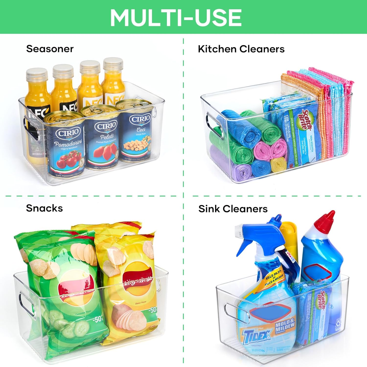 6 Pack Clear Plastic Storage Bins, 11" Large Pantry Organizer Bins with Handles, Plastic Containers for Refrigerator,BPA-Free Perfect for Kitchen,Fridge,Cabinet,Pantry,Bathroom,Closet Organization
